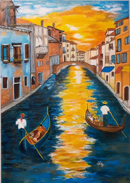 Tabloul este pictat in acril pe panza cu sasiu, dimensiune 50/70 cm. Marginile tabloului sunt pictate nu necesita inramare, are agatatoare montata. Acesta a participat la expozitia din acest an in cadrul Centrului de cultura urban Turnul Croitorilor Cluj.