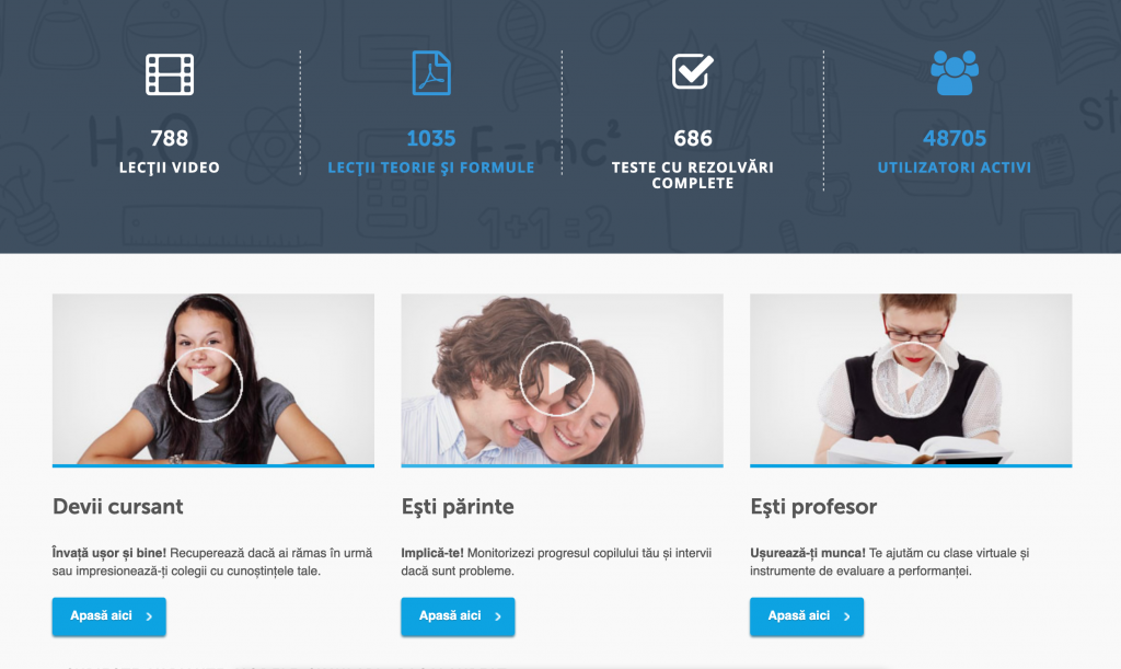 Am descoperit cu plăcere o platformă educațională unică în România și care prezintă într-o manieră facilă lecții de matematică, fizică, chimie pentru gimnaziu și liceu.