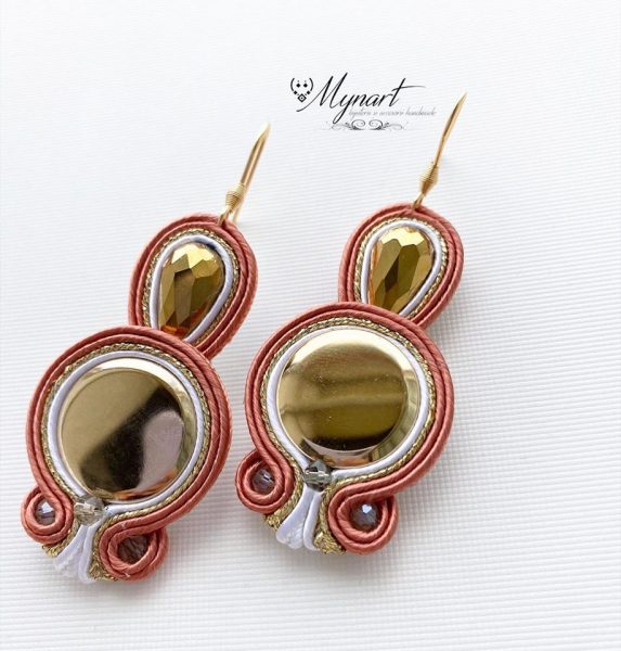 Cercei lucrati manual cu tehnica soutache, model unicat. Cerceii sunt prevazuti cu tortita otel inoxidabil aurit.
