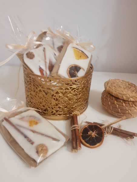 Lumanari decorative, parfumate, din ceara de soia 100% ce contin bucatie de portocala si scortisoara.