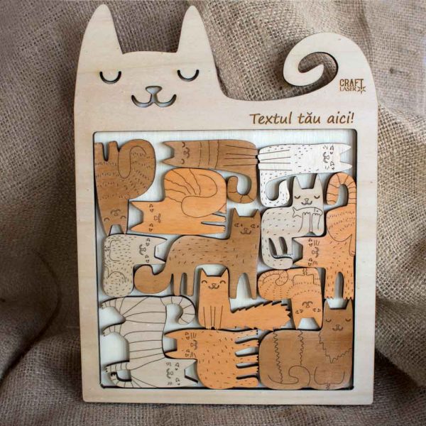 Jocul contine un numar de 13 bucati din lemn reprezentand diverse modele de pisici.