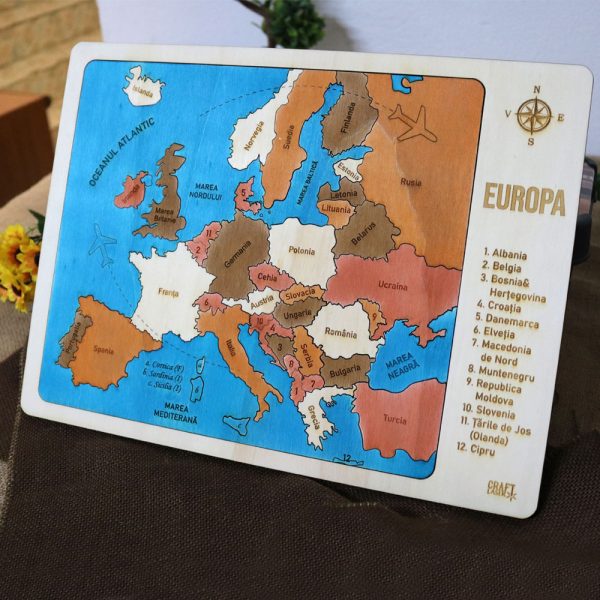 – 35 piese gravate din lemn reprezentand tarile Europei (una din ele fiind Marea Neagra)
