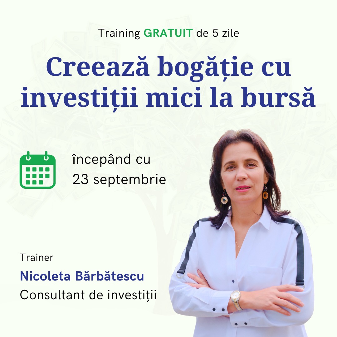 Personal pot să spun ca Nicoleta mi-a schimbat viata, si nu glumesc.Inainte de a lucra cu ea faceam cheltuieli impulsive, nu aveam un buget, habar nu aveam pe ce se duc banii ramaneam la sfarsit de luna fara.Acum am inceput sa am un buget, stiu pe ce se duc banii, am renunta la unele cheltuieli si cel mai mult ma bucur ca am reusit sa economisesc si sa investesc lunar o suma de bani, nu foarte mult dar e un inceput.N-am sa uit niciodata senzatia aia cand am primit dividendele, adica niste bani pt care nu am muncit, aia a meritat toți banii dati pe program.Multumesc.