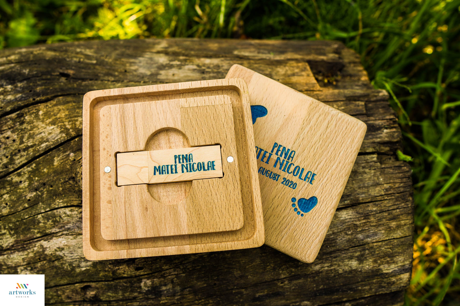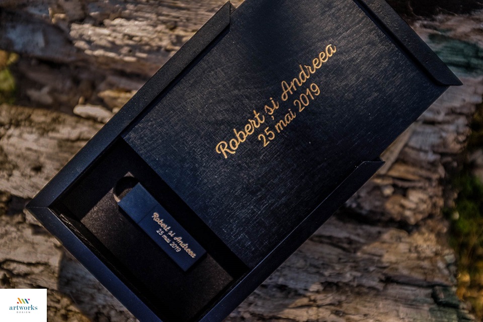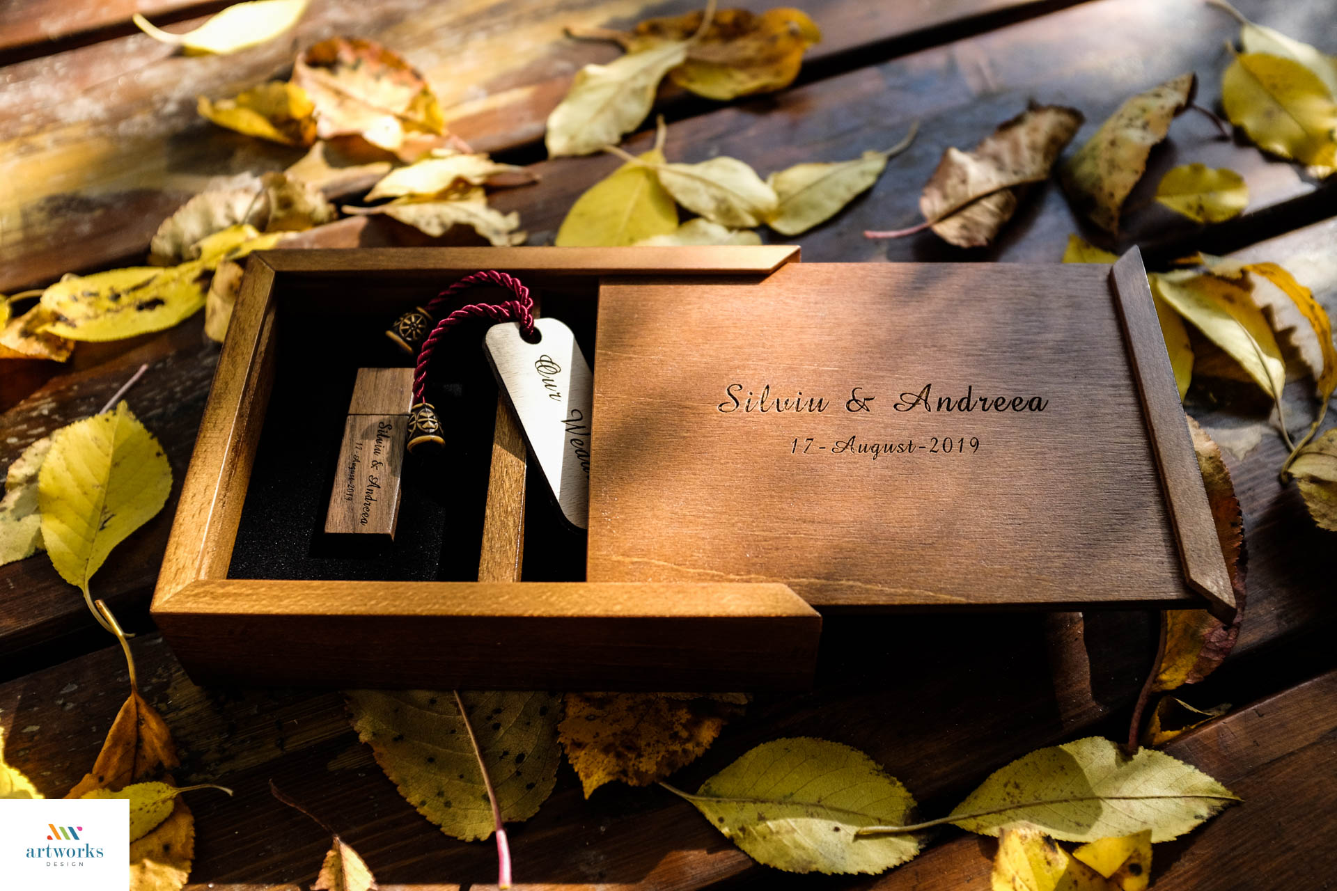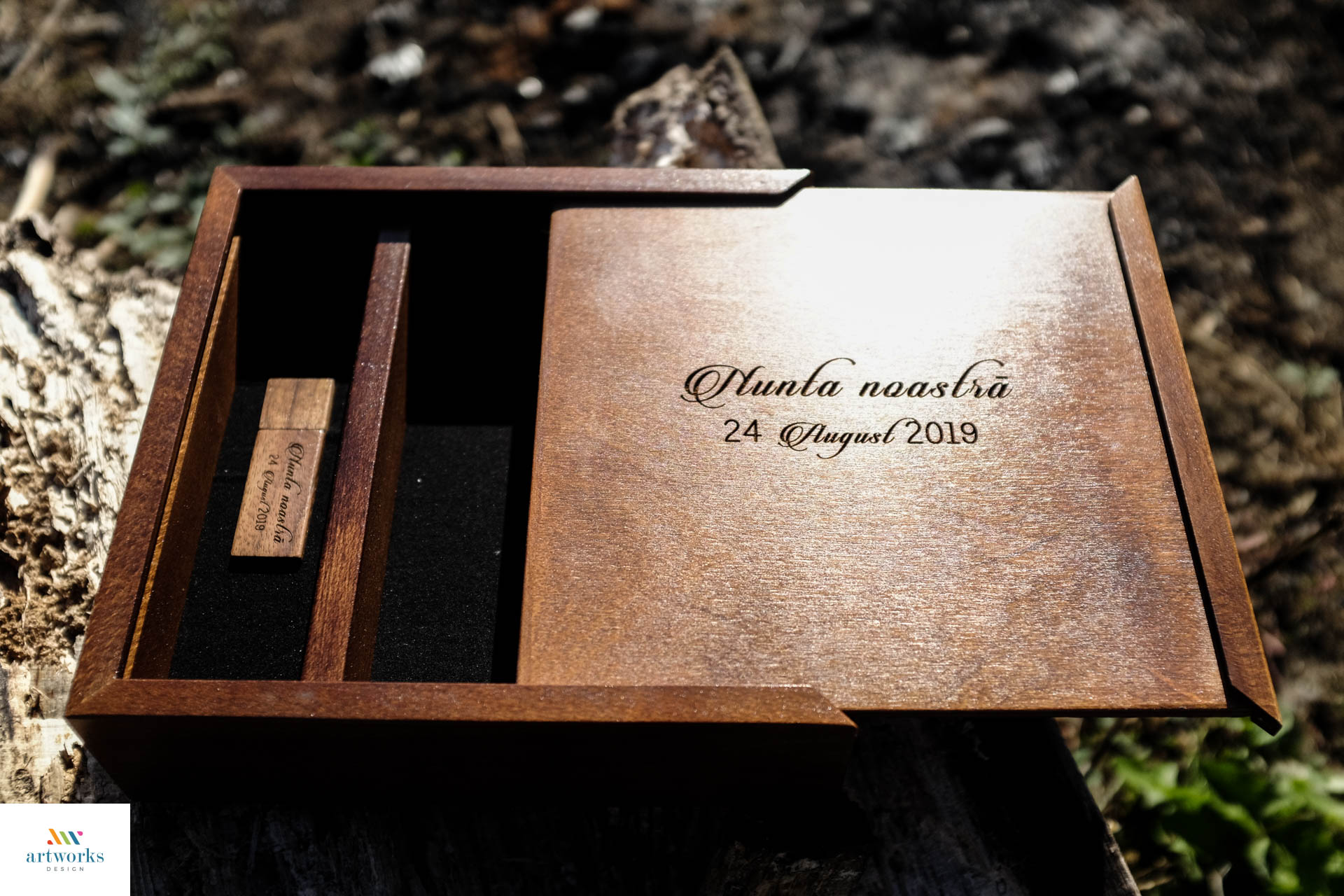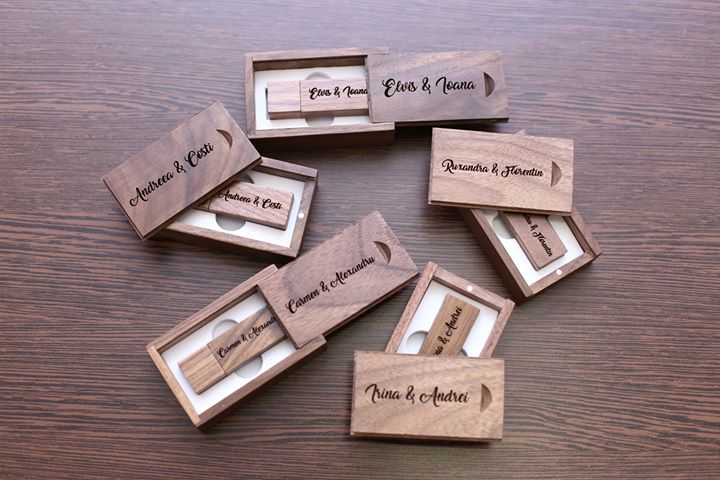 Produse personalizate, tip WEDDING sau GIFT: cutii din lemn, memorii USB, guestbook-uri, cutii verighete, cufare, tablouri din lemn, stampile sigiliu, invitații din lemn, platouri, tocătoare, etc. Produsele pot fi personalizate prin gravura laser sau print UV.