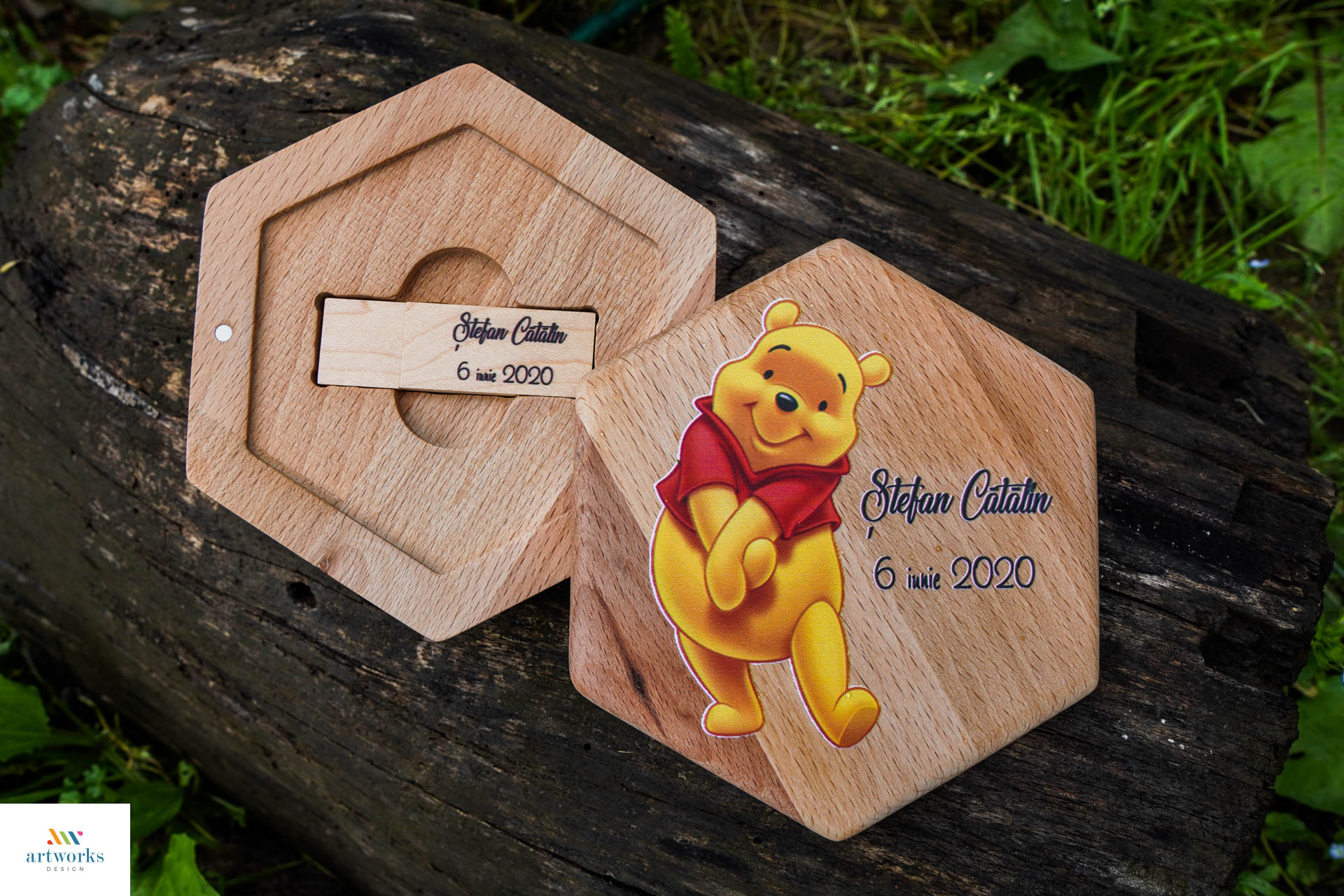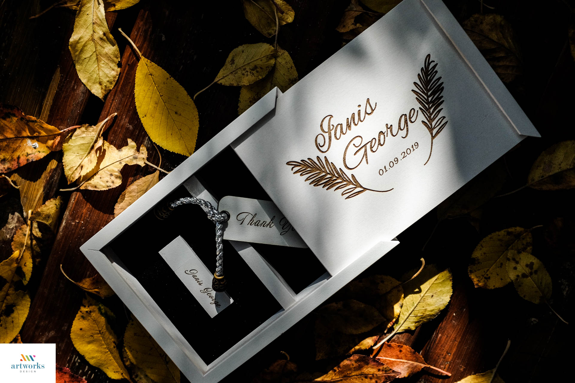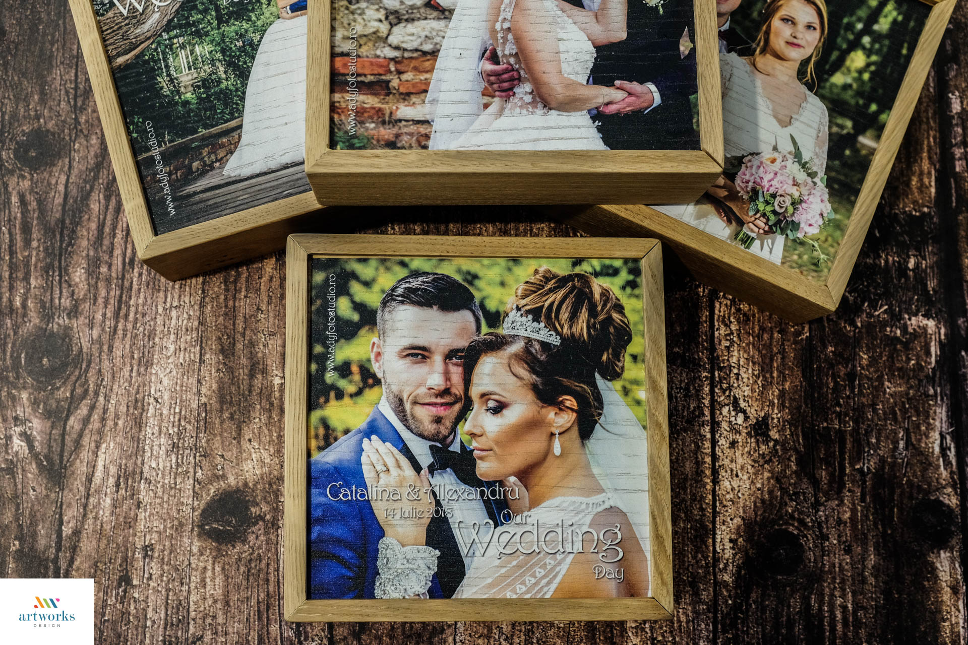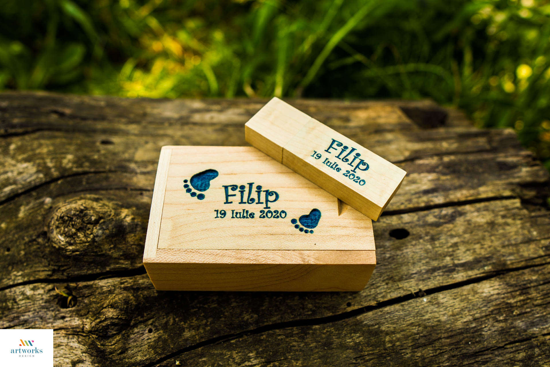 Produse personalizate, tip WEDDING sau GIFT: cutii din lemn, memorii USB, guestbook-uri, cutii verighete, cufare, tablouri din lemn, stampile sigiliu, invitații din lemn, platouri, tocătoare, etc. Produsele pot fi personalizate prin gravura laser sau print UV.