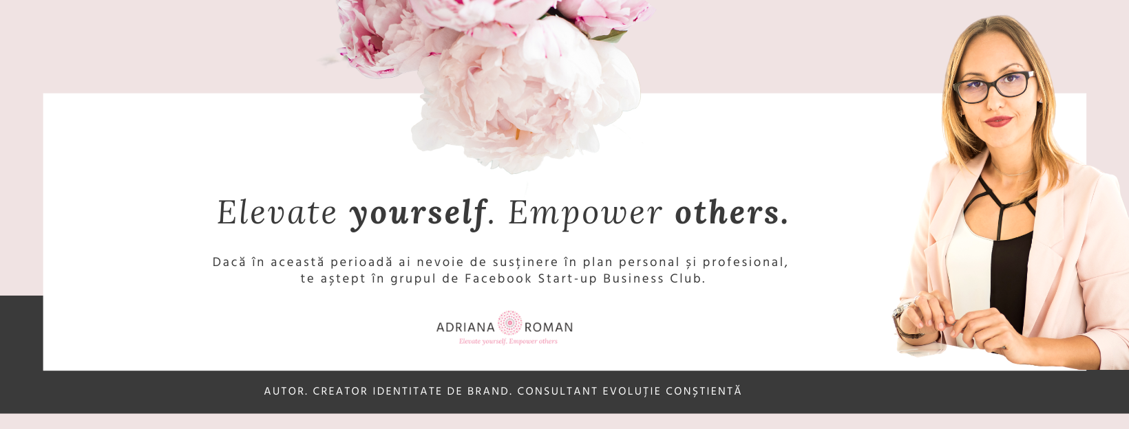 Bună, sunt Adriana Roman, scriitoare, Consultant in evolutie conștientă și Creator de identitate de Brand.