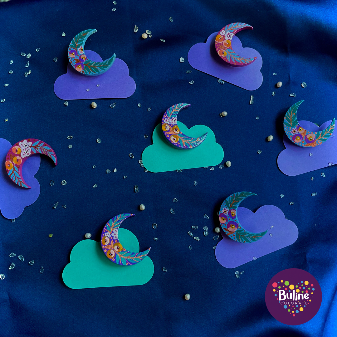 🌙Câteva din creațiile reprezentative pentru brandul Bulinelor Colorate sunt ilustrațiile magice în acuarelă sau culori acrilice, broșele de lemn pictate manual sau obiectele decorative de păstrat în buzunarul de la suflet.