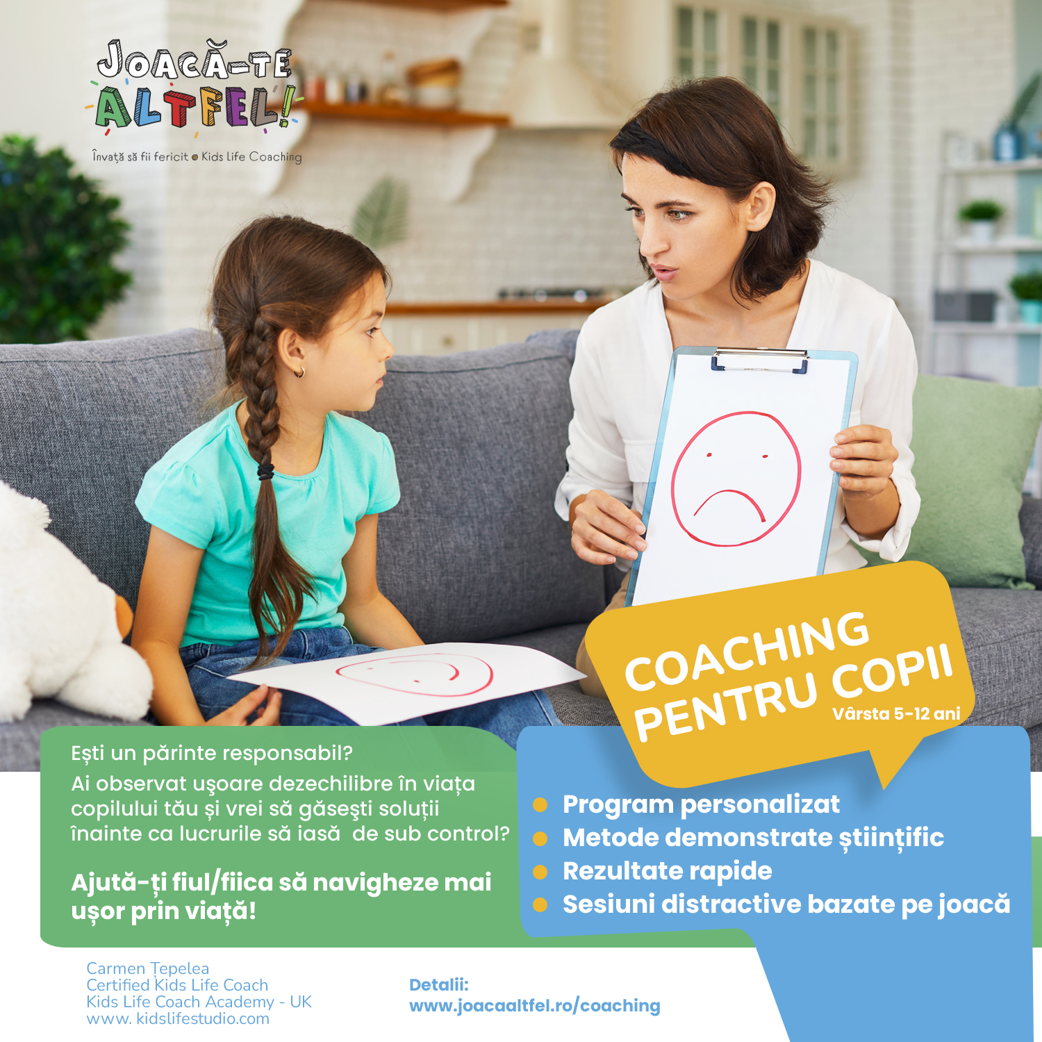 Sunt pregătită să ofer sprijin copiilor care se confruntă cu probleme cotidiene punându-le la dispoziție un set de instrumente tangibile și oferindu-le soluții provocărilor de care au parte înainte că lucrurile să iasă de sub control.