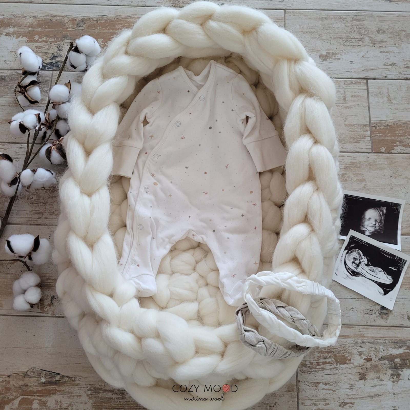 Am inceput în concediul de creștere copil o mica afacere care consta în crearea de paturi, obiecte decorative pentru camera bebelușului și pentru casa în general (cosulete, perne, scaune) și babynest-uri, toate confecționate din lana merinos. Articolele sunt handmade, impletite cu mare atenție și dragoste!😊