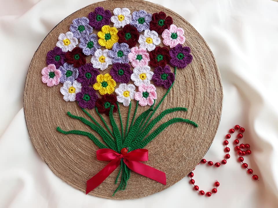 Realizez diferite lucrușoare croșetate, în special căciulițe și tablouri. Cel mai mult îmi place să fac tablourile croșetate, este o idee proprie, originală.