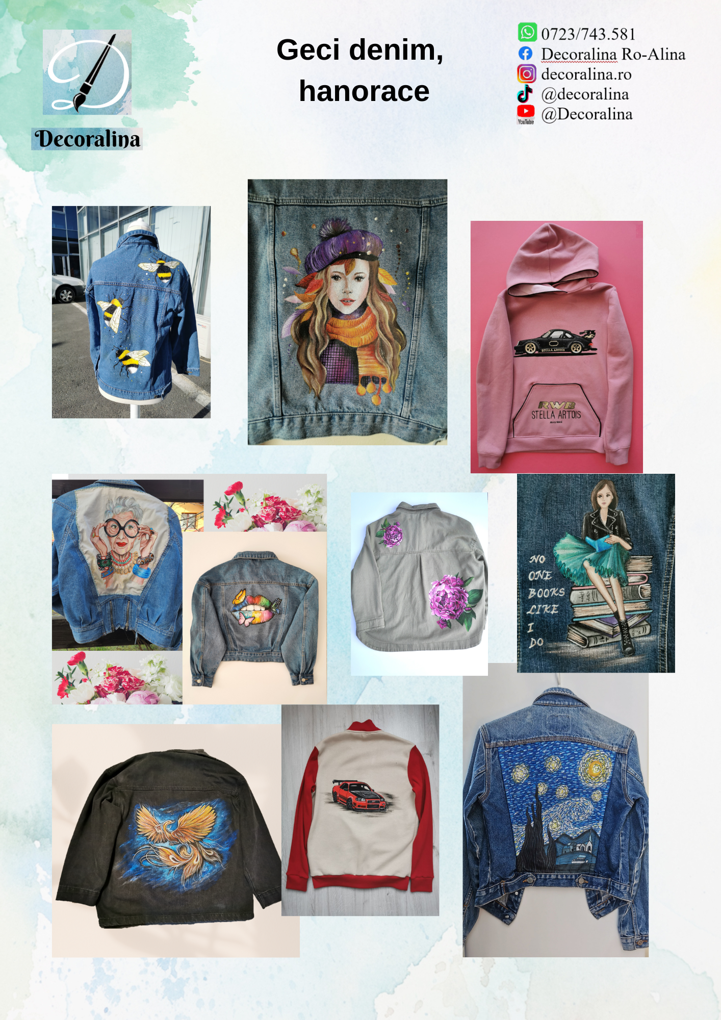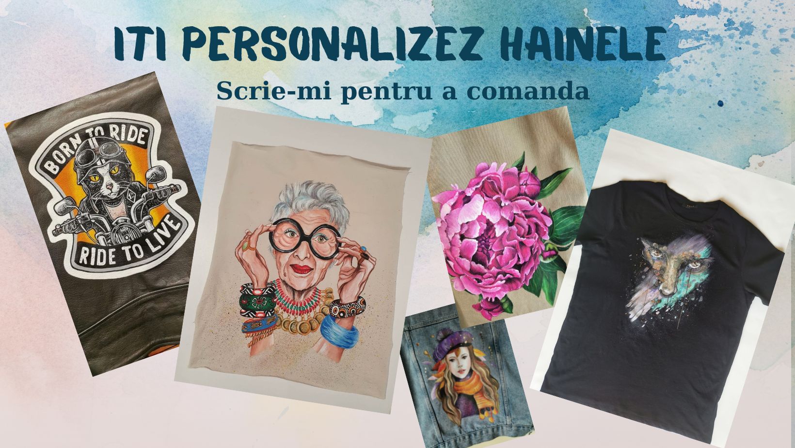 Îmi explici ce îți dorești, pe ce suprafață ai nevoie să fie făcută personalizarea, stabilim dacă este potrivită pentru personalizare, îmi comunici modelul dorit și eu îti ofer schițe/variante de execuție, până când ajungem la varianta optimă dorită.