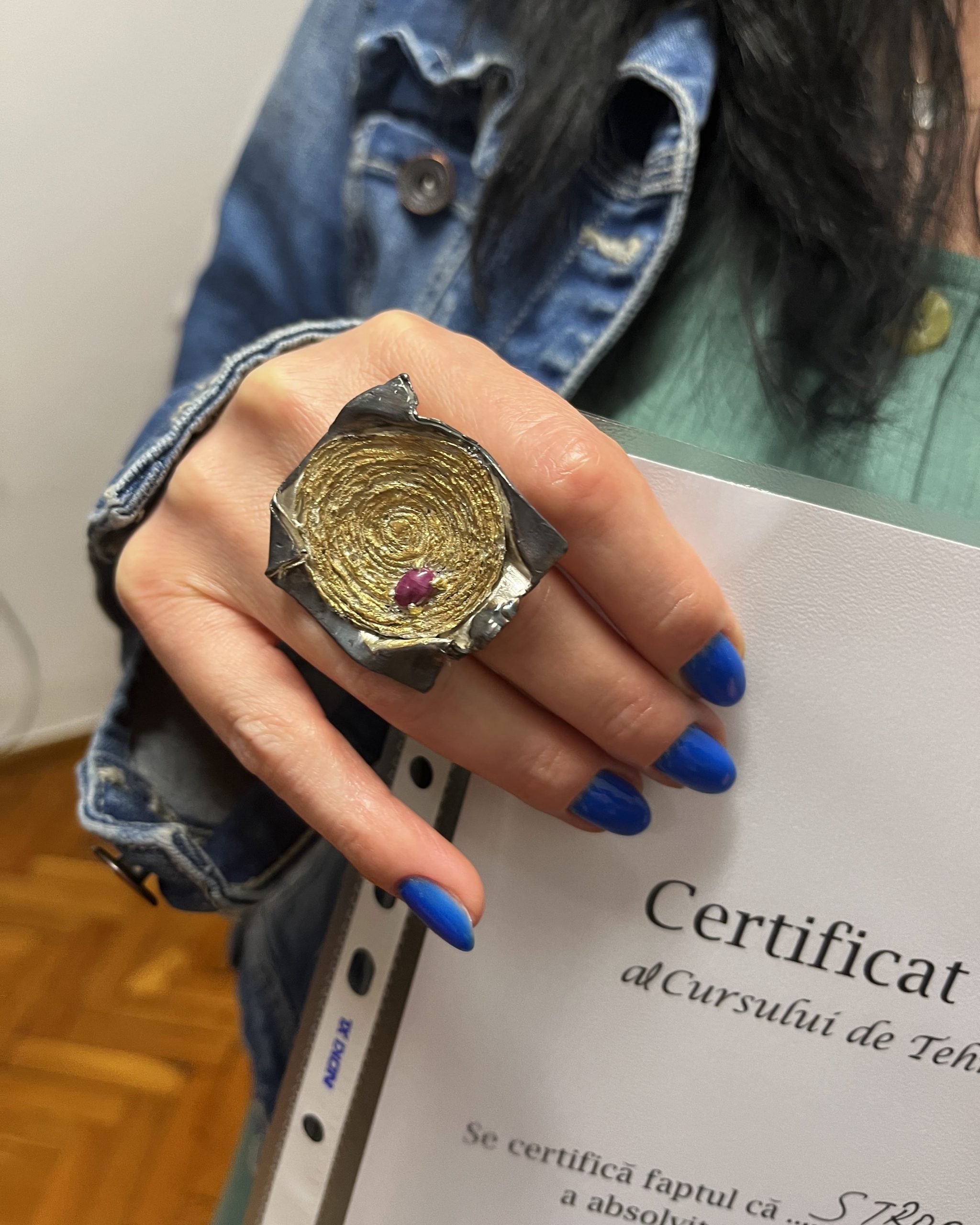 La curs se va lucra doar in argint. La cerere se pot turna si in aur piesele lucrate in ceara, însă acest proces va implica costuri suplimentare si un timp mai îndelungat pana la primirea bijuteriilor. Puteți solicita informații suplimentare pe Whatsapp-ul scolii. Atelierul nu toarnă in alte metale, de tipul: bronzului, cuprului sau alamei.