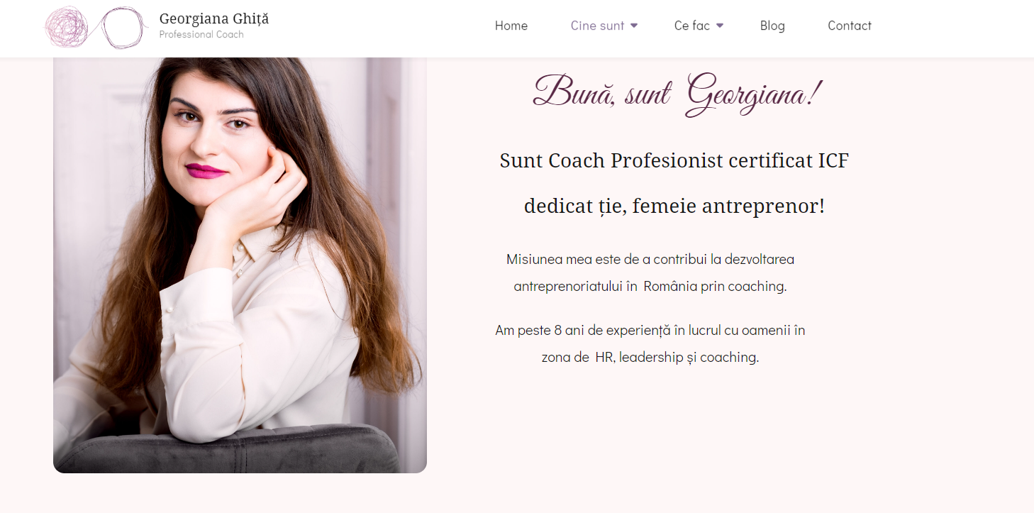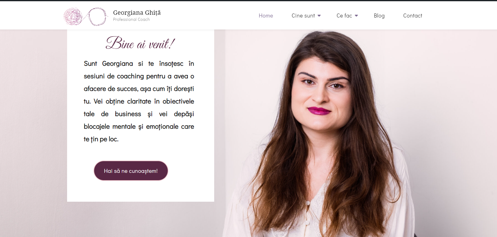 Sunt Georgiana, sunt Coach Profesionist certificat ICF și te însoțesc în sesiuni de coaching pentru a avea o afacere de succes, așa cum îți dorești tu. Vei obține claritate în obiectivele tale de business și vei depăși blocajele mentale și emoționale care te țin pe loc. Prin instrumentele mele unice și simple: intuiția, prezența și puterea relației, te însoțesc în sesiuni de coaching pentru a obține claritate în obiectivele și pentru a avea viața și afacerea pe care ți le dorești.