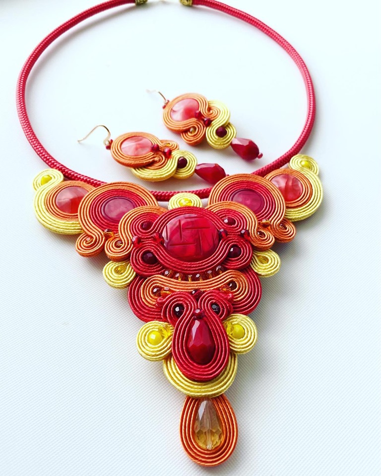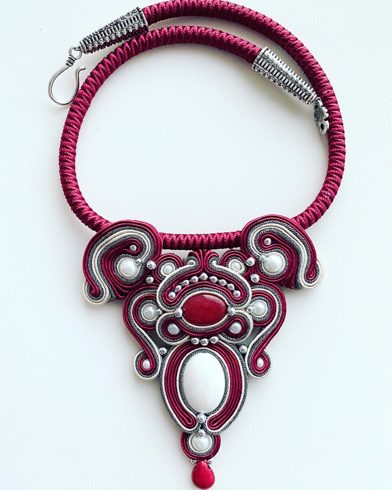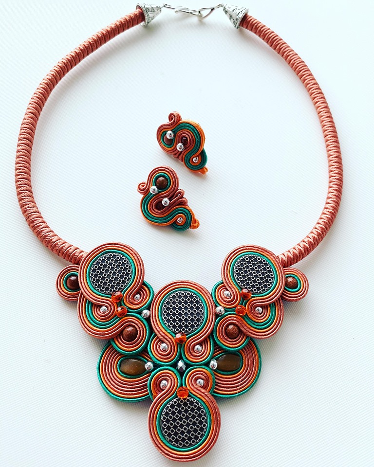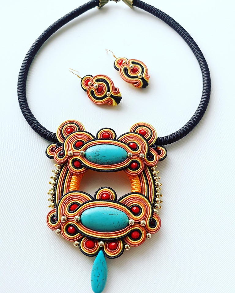 Tehnica soutache a fost dragoste la prima vedere și a devenit, în scurt timp, emblema mea. Creațiile în acest stil sunt piesele mele de rezistență, ale căror cromatica strălucitoare fac din aceste adevărate bijuterii inconfundabile. Sunt ușoare, au forme spectaculoase de inspirație barocă. Purtate pe o ținută simplă care să le pună în valoare, vor fi mereu în centrul atenției.
