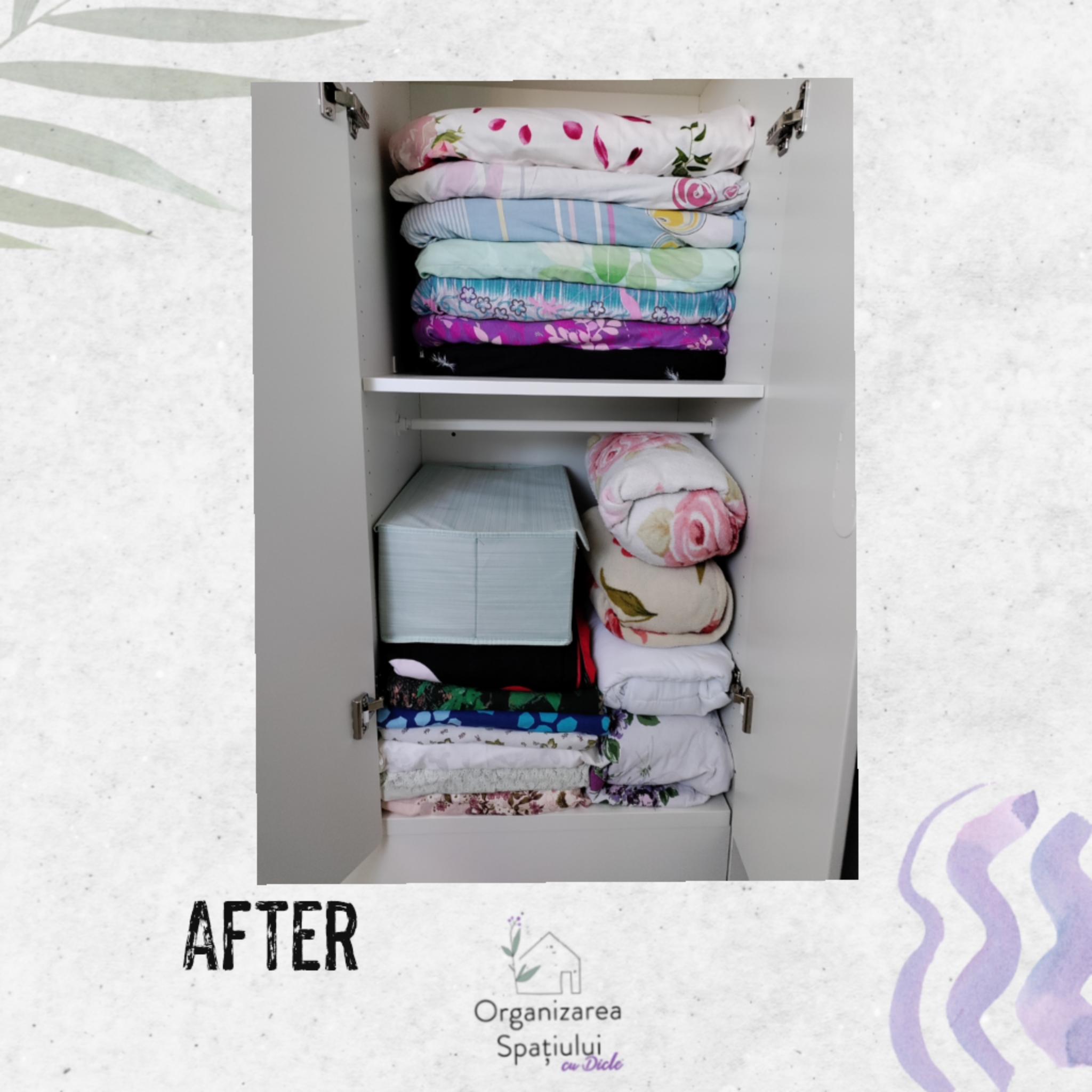 Imaginează-ți un spatiu organizat care nu îți mai consuma toată energia, în care simți relaxare, inspirație, unde toată lumea știe unde sunt puse lucrurile. Este o senzație grozavă să vezi în jurul tău rafturile fară obiecte în exces, sertarele aranjate și hainele ordonate! Confortul din mediul tău te face de fapt să câștigi timp pentru ceea ce iți aduce fericire și contează pentru tine cu adevărat.