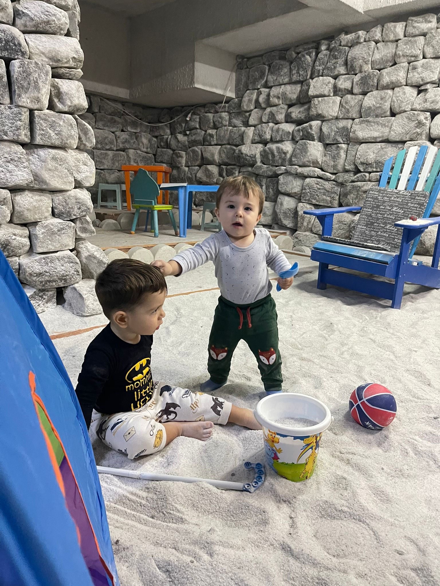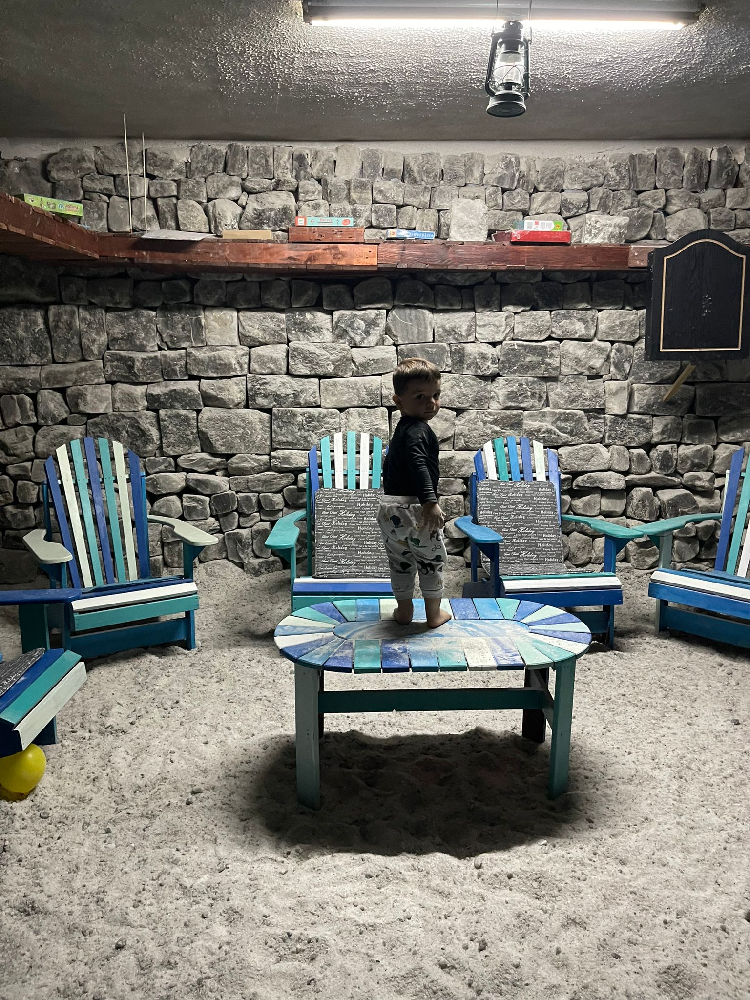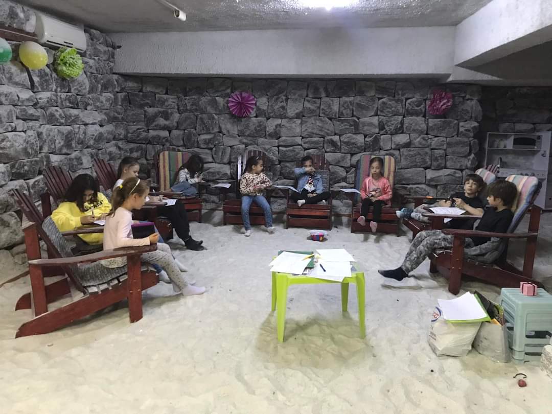 Este formată din 2 camere( aproximativ 100mp ) ce conțin 60 de tone de sare distribuite atât pe pereți, sub formă de bulgări, cât și pe jos. Găsești în interior o mulțime de jucării, cărți de citit/colorat, table, șah, televizor, astfel încât să nu te plictisești când vii la terapie.