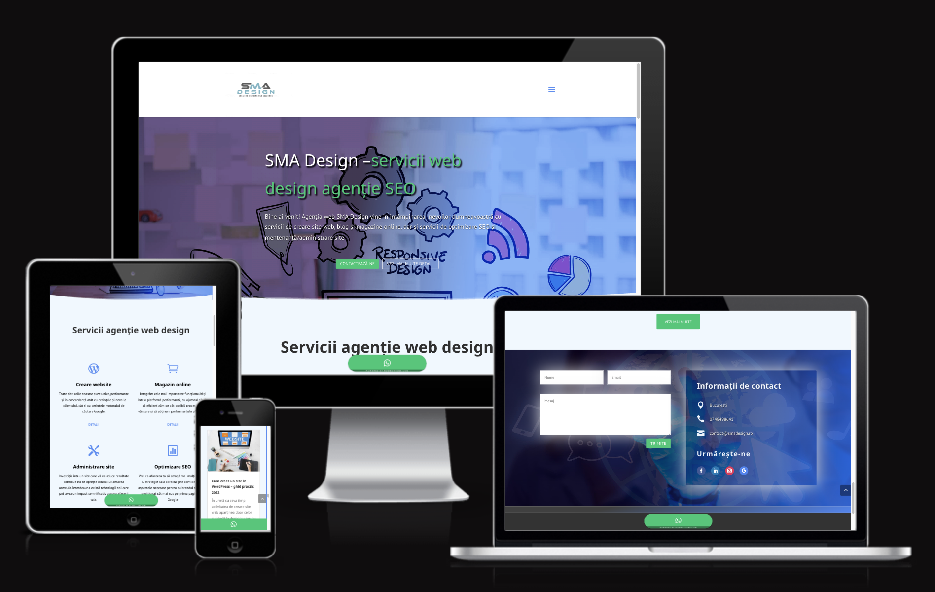 Agenția web SMA Design vine în întâmpinarea  nevoilor dumneavoastră cu servicii de creare site web, blog și magazine online, dar și servicii de optimizare SEO și mentenanță/administrare site. Ne definesc următoarele atuuri: