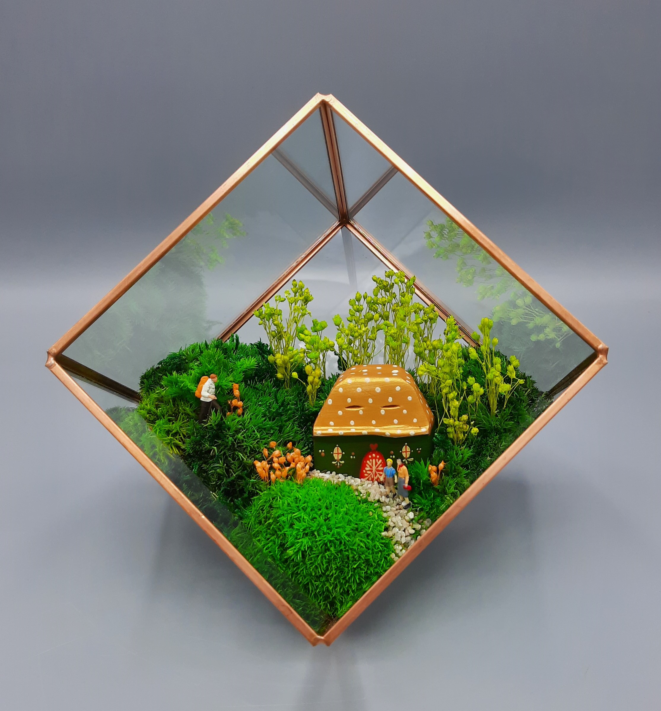 Sunt Carmen și creez obiectele decorative marca Terraria. Bucurie Vie – ie terarii cu plante naturale, tablouri decorative cu plante și flori conservate de mine, scene cu mușchi și plante conservate – pentru a ne îmbogăți viața și a inspira reconectarea cu Natura. Toate piesele sunt unicate sau serie foarte scurtă. Misiunea mea este că prin interacțiunea cu plantele să dau oamenilor ocazia de a se relaxa și a fi mai conectați cu ei înșiși, cu cei din jurul lor, și mai ales cu Natura și energia universală.