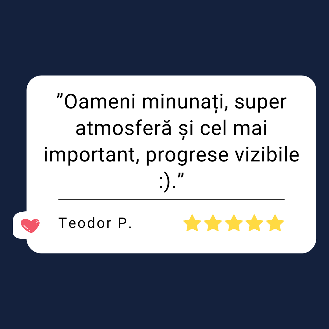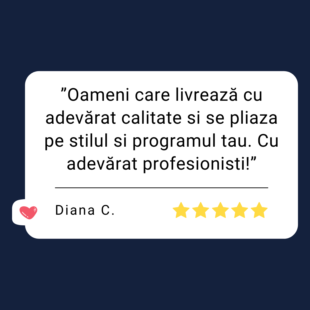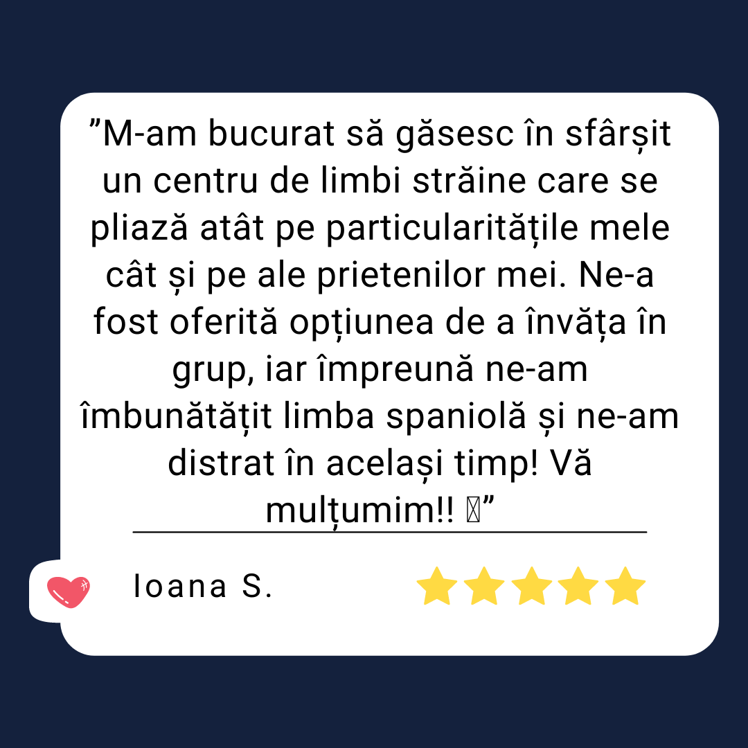 Fiecare client este unic, deci fiecare experiență de învățare este unică. La consultanța gratuită de la început, îți creem un plan personalizat de învățare prin care să îți atingi obiectivele eficient. Aducem la sesiuni subiecte de care ești interesat și ne focusăm doar pe ce ai nevoie.