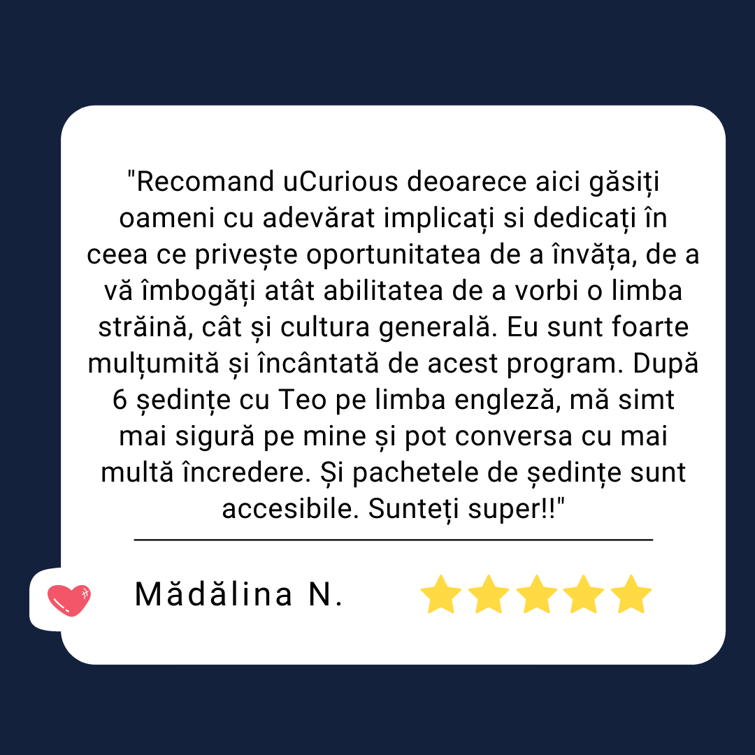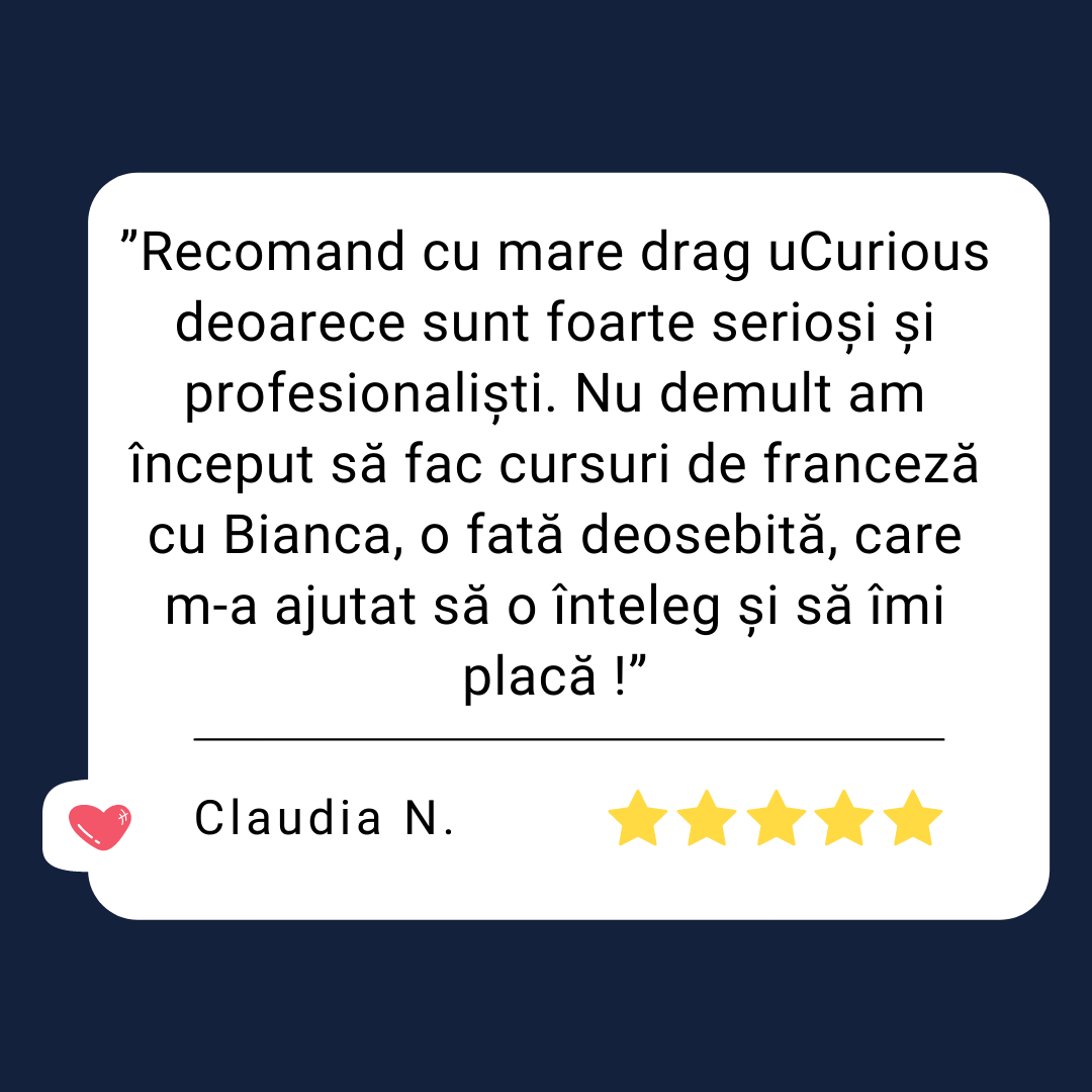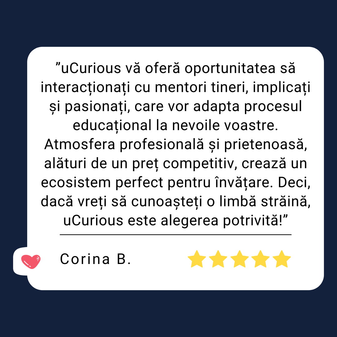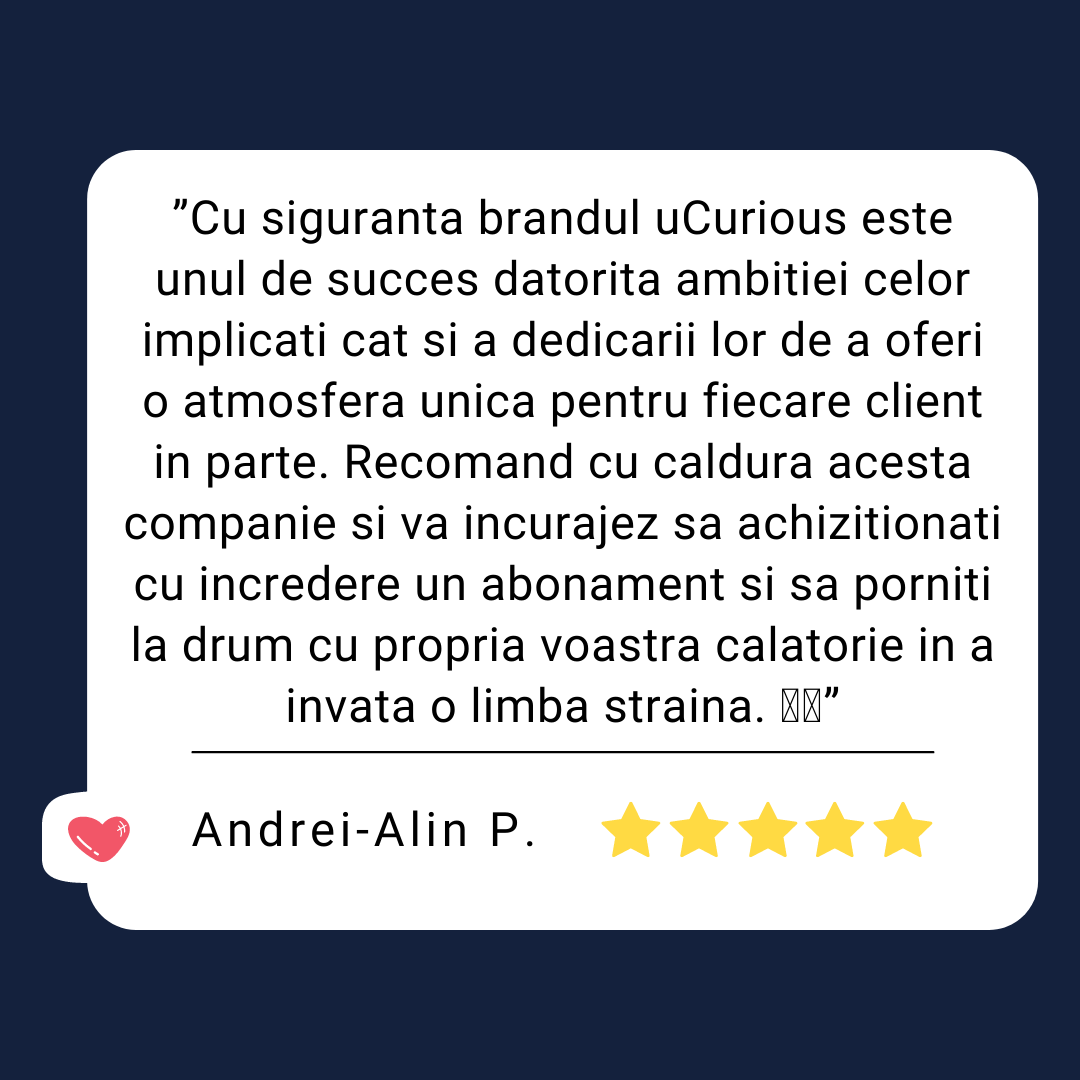 uCurious este o academie online de învățare a limbilor străine. uCurious a pornit din dorința de a avea acces la cursuri de limbi străine flexibile – ca timp, buget și mentori.