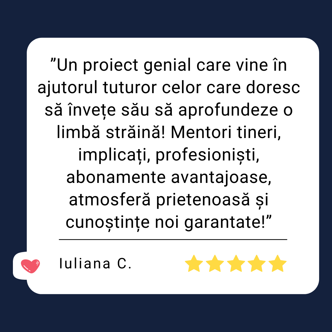 Mentorii noștri sunt tineri pasionați, cu deschidere internațională care vor avea grijă să te bucuri de călătoria unei noi limbi străine.