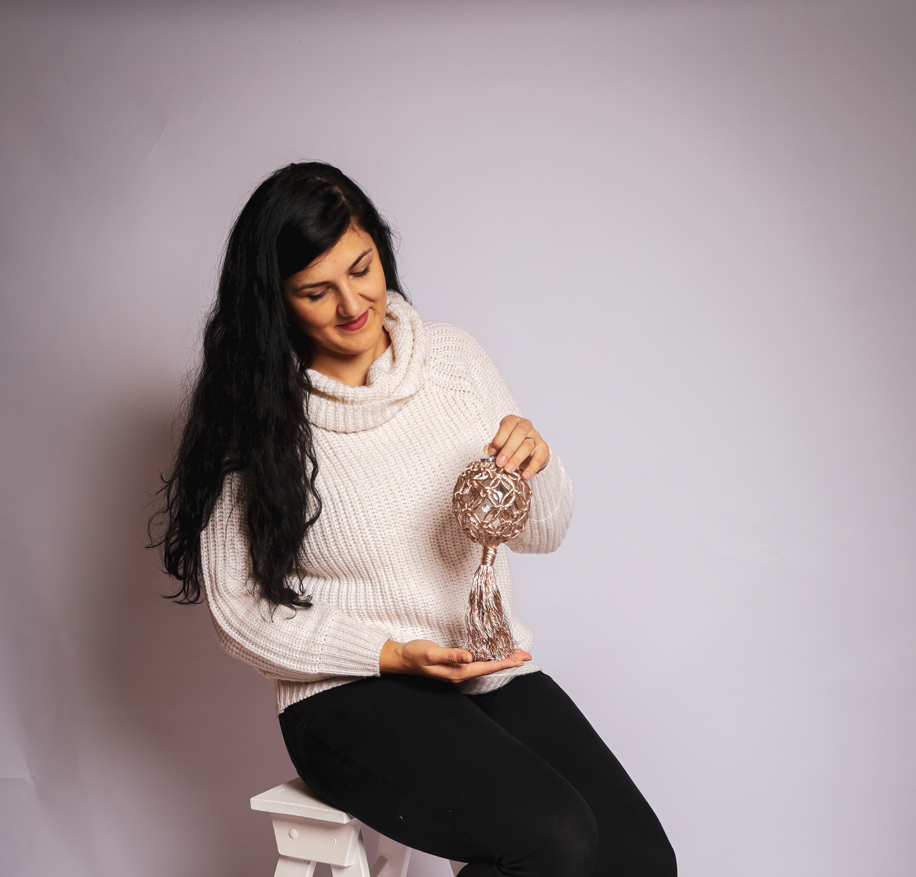Povestea mea cu arta decorativă a început acum mai bine de 15 ani, am învățat tehnicile și posibilitățile infinite de combinare a nodurilor la Palatul copiilor din orașul meu natal, Buzău, unde ne înscriam mereu la cursuri noi la începutul anului. Nimeni nu vedea potențialul în asta, toți ziceau că e o pierdere de vreme și că nu mă ajută la nimic să știu să împletesc niște sfoară de cânepă pe vremea aceea. Dar ușor ușor am avut și primele comenzi chiar înainte de primul an de liceu. Pentru că se găseau foarte greu atunci chiar și sforile de cânepă de calitate, o vreme nu am mai împletit. Însă mereu aveam pe undeva un băț superb sau niște sfoară pe care o pot înnoda oricând și oriunde. Lucrările mele au ajuns și peste mări și țări, iar eu sunt mereu încântată să le văd plecând la noile lor case.