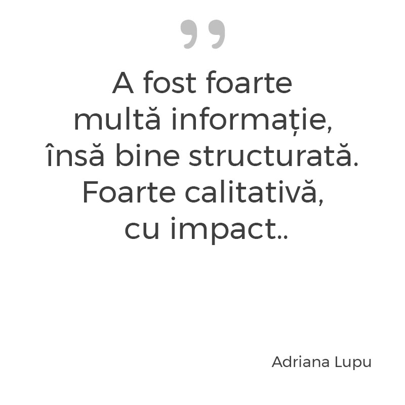 A fost foarte multă informație, însă bine structurată. Foarte calitativă, cu impact. – Lupu Adriana