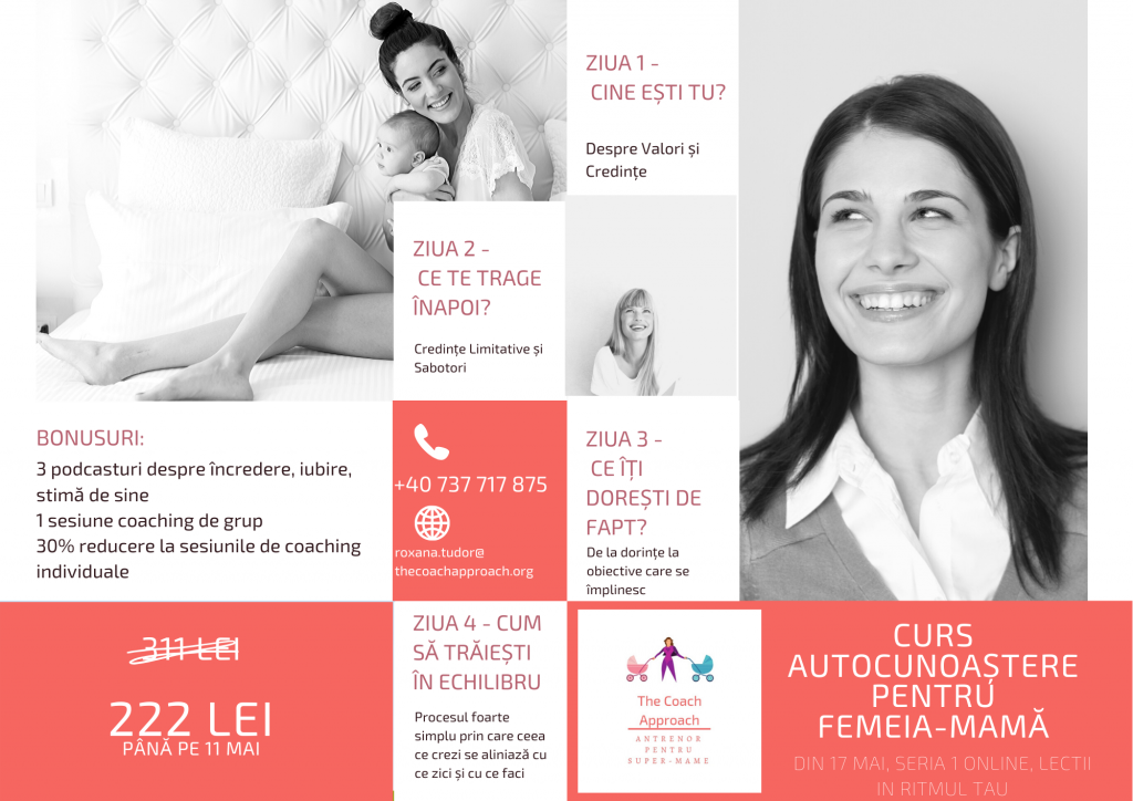 Mamele echilibrate și conștiente de azi cresc adulțiiPoți să te înscrii la curs, prin telefon, la numărul +40 737 717 875 sau folosind butonul de mai jos: