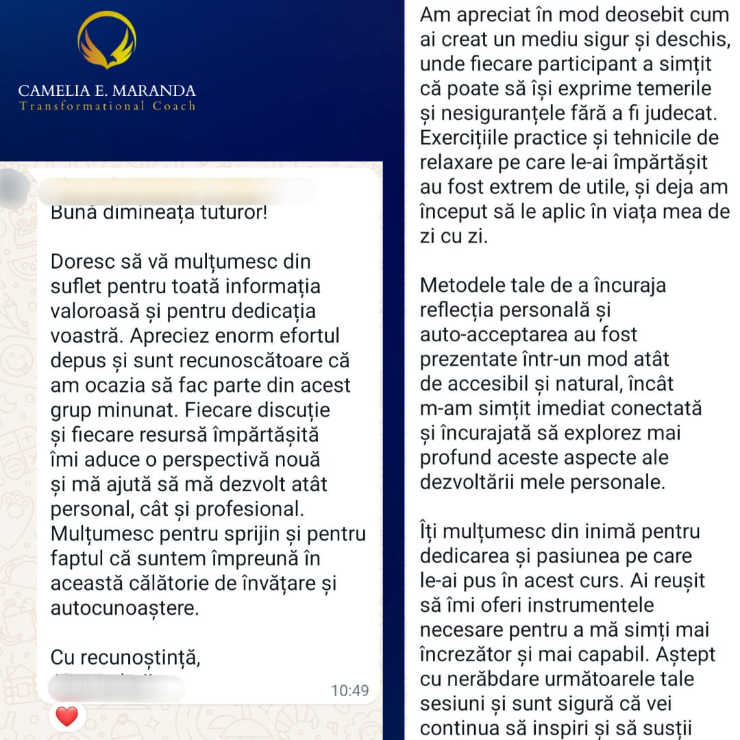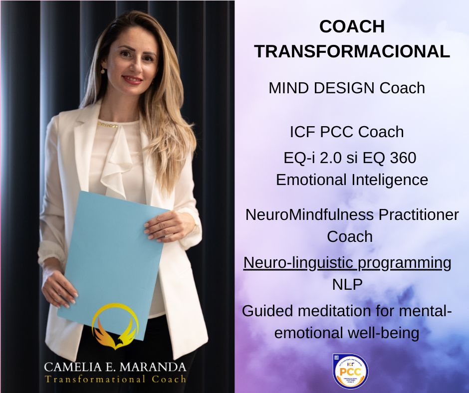 📜Sunt certificata in: Coaching Profesional, Programare Neurolingvistica (NLP), Inteligenta Emotionala si testare, NeuroMindfulness si alte formari pe leadership, tehnici de neurostiinta si metafizica, etc.