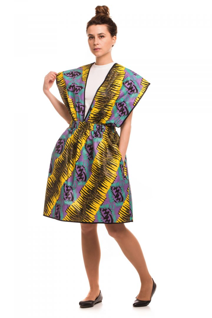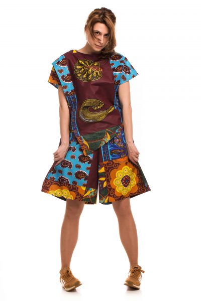 Compleu din bumbac cerat cu imprimeu african maro 1