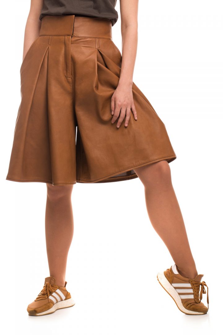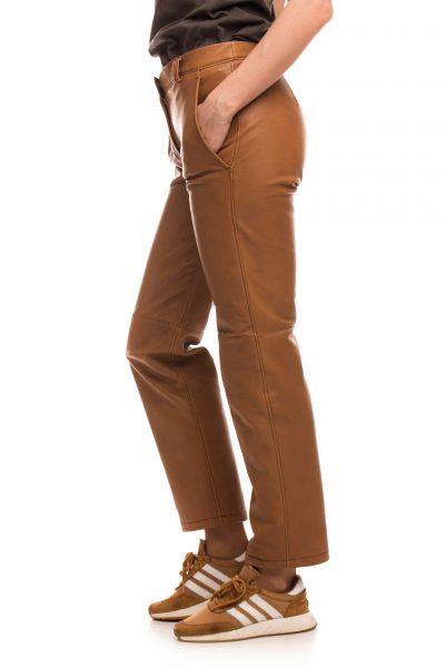 pantalon din piele naturala 100 cu talie inalta si buzunare 3