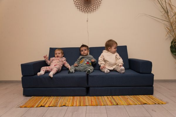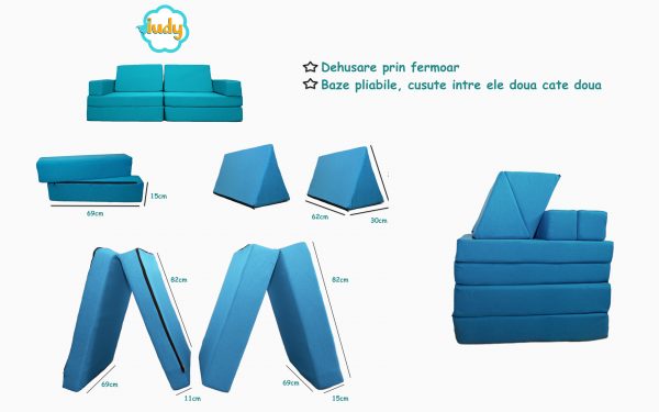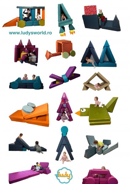 Canapeaua-jucărie care se transformă în orice își pot imagina cei mici, castel, tunel, mașină, cursă cu obstacole. Imaginația este limita!