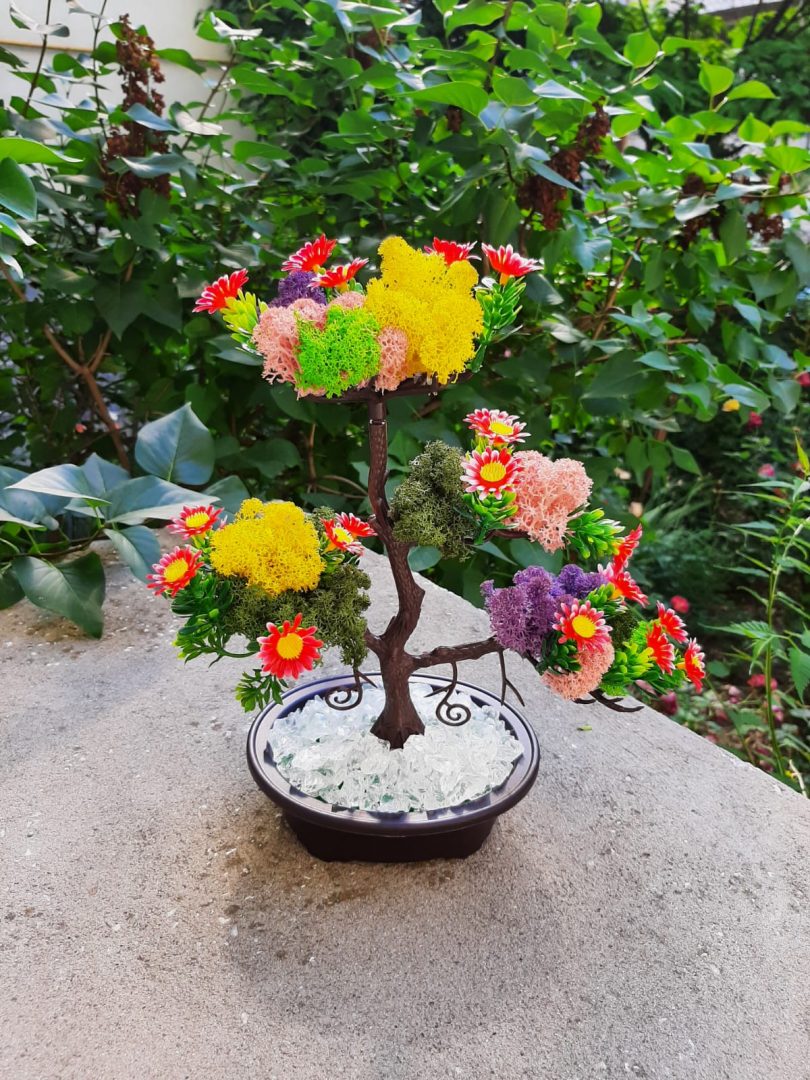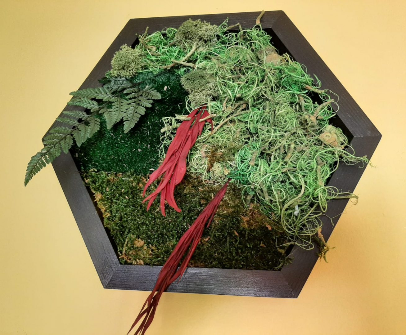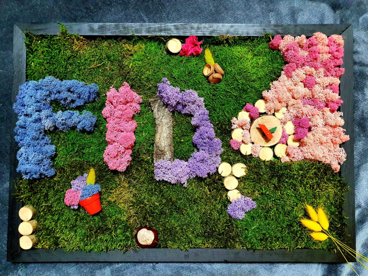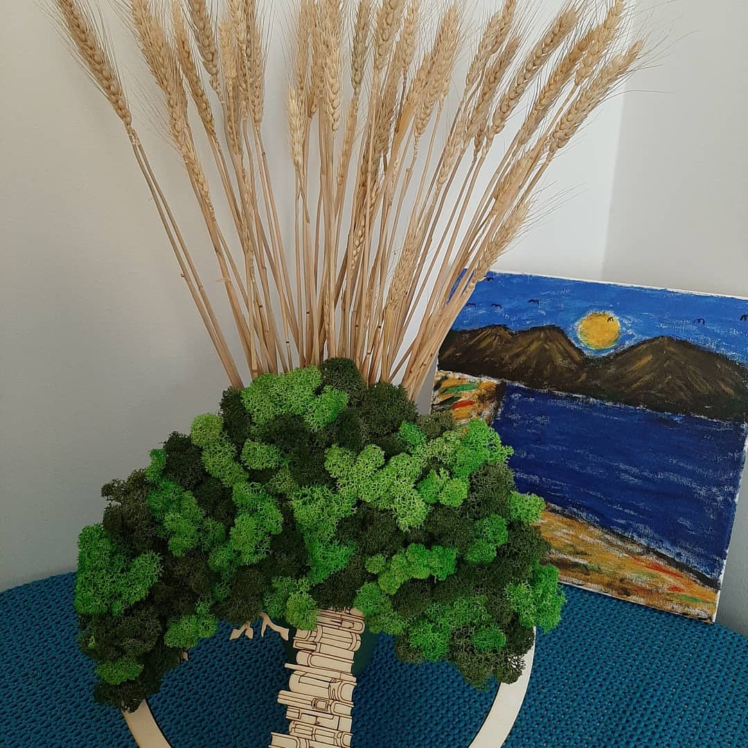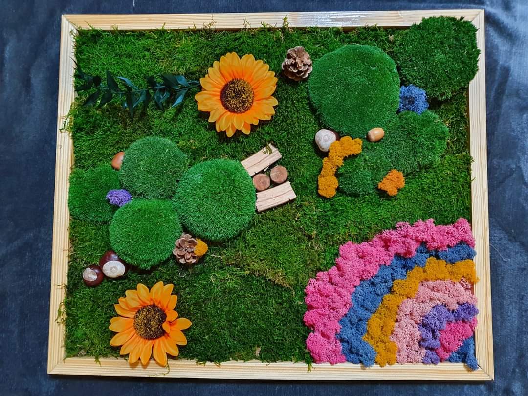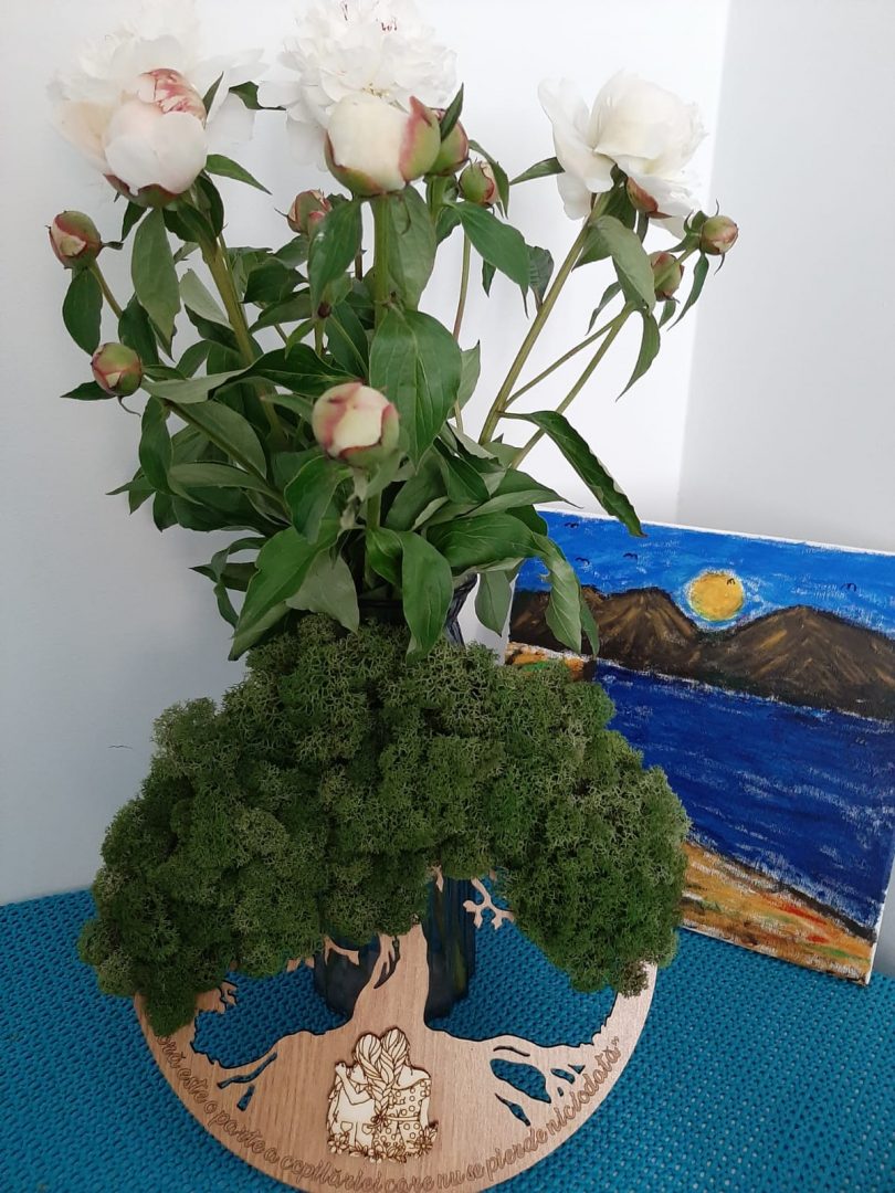 Mã numesc Paula Crețu şi realizez tablouri şi decoraţiuni cu licheni şi plante stabilizate.