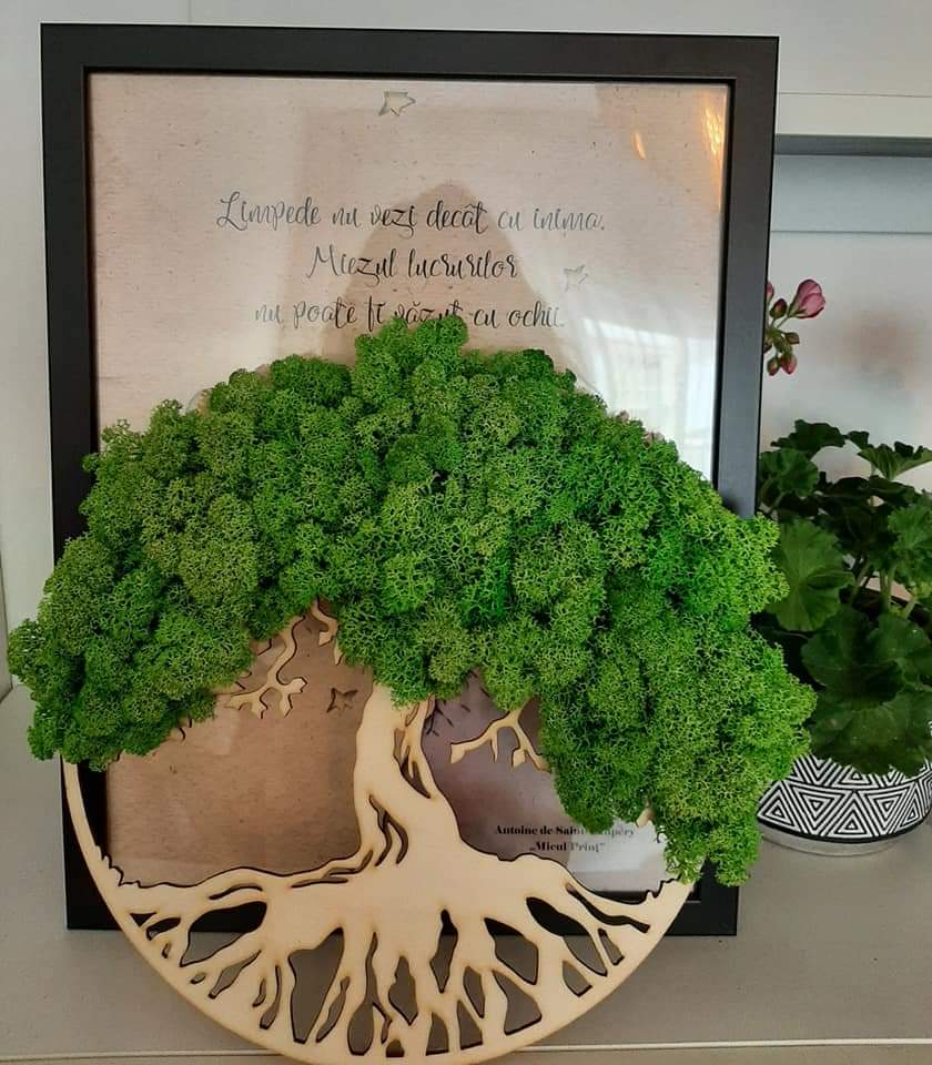 Tablourile cu licheni sunt realizate cu gândul la familie, prieteni, colegi sau realizate ca decorațiuni pentru birou si spatii comerciale dar şi pentru acasă.