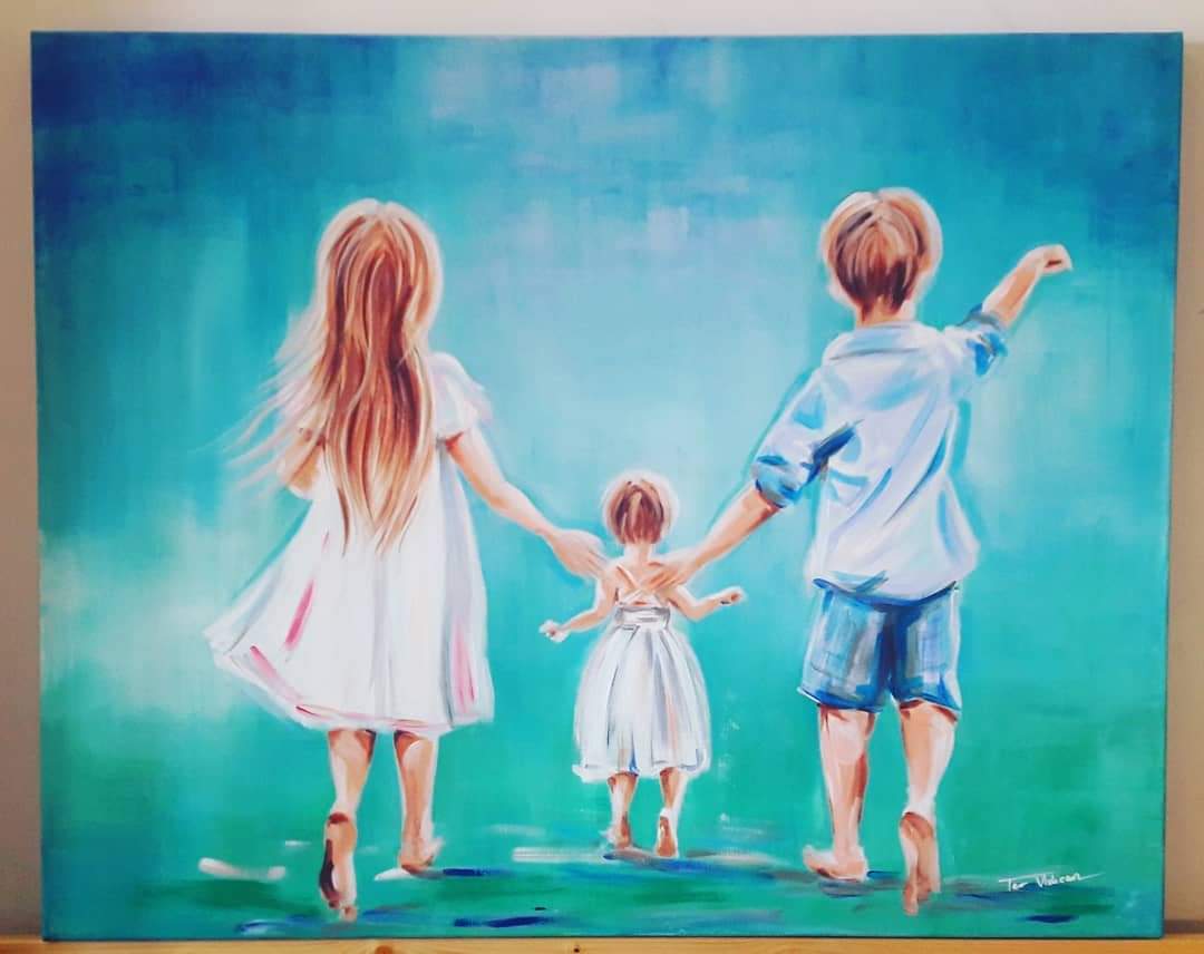 Deși primul răspuns care mi-a venit în minte a fost că am reînceput să pictez când cei doi băieți ai mei au crescut și am avut mai mult timp...realizez acum că aveam cel mai puțin timp,dar cea mai mare nevoie de a mă exprima.Am început cu pași mici, cu câte o comandă pentru cunoscuți, cu realizarea unei pagini de Facebook și cu mult entuziasm.