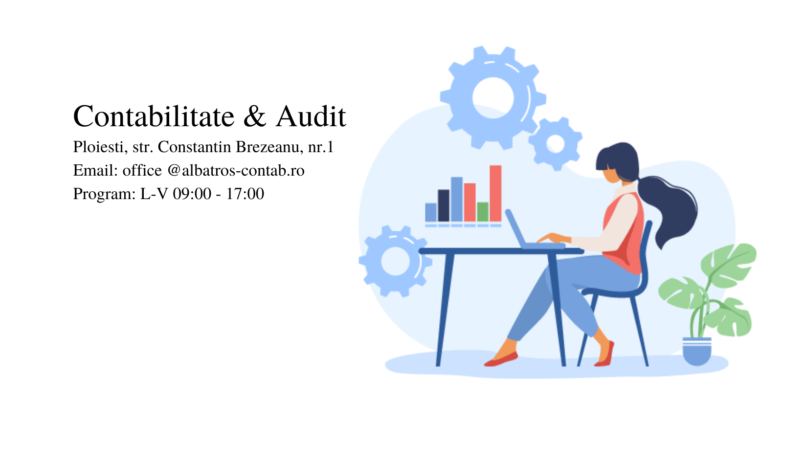 Sunt Roxana Danciu, mama, soție, antreprenor, omul și expertul din spatele companiei “Albatros Contab Audit”. Am o experiență de peste 15 ani în contabilitate și audit, și sunt aici pentru tine în calitate de partener, să îți asigur sprijinul, suportul și consilierea necesară astfel încât business-ul tău să treacă la următorul nivel.