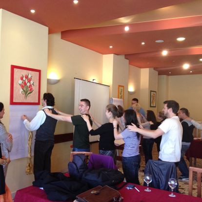 Pun experiența mea de manager în corporații și pe cea de trainer în cursuri de soft-skills, coaching de echipă și programe de wellbeing.