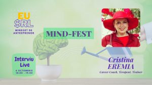 - MIND-FEST – Cristina EremiaProiectul EU SRL vă propune în luna OCTOMBRIE tema MIND-FEST!O deschid alături de CRISTINA EREMIA. Cine este Cristina Eremia Cristina spune despre ea: ”Este misiunea mea personală să susțin oamenii în dezvoltarea lor, fac asta de… Citește mai mult: MIND-FEST – Cristina Eremia