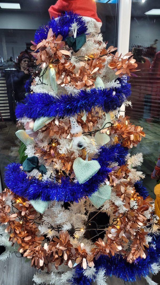 Anul acesta am împodobit excepțional bradul cu inimioare realizate din resturi de materiale textile.Suntem mesagerii reducerii cantităților de deşeuri textile prin restilizarea hainelor.