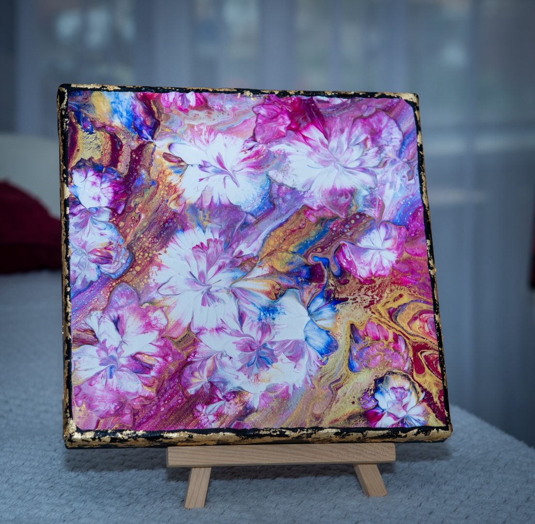 Tehnica : mixed media, acrylic pouring și gold leafing