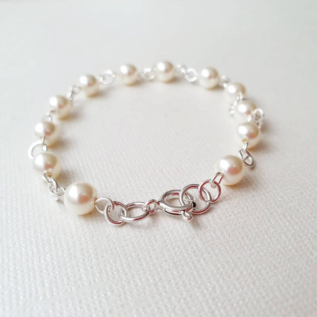 Bratara din argint cu perle Swarovski crem de 6 mm
