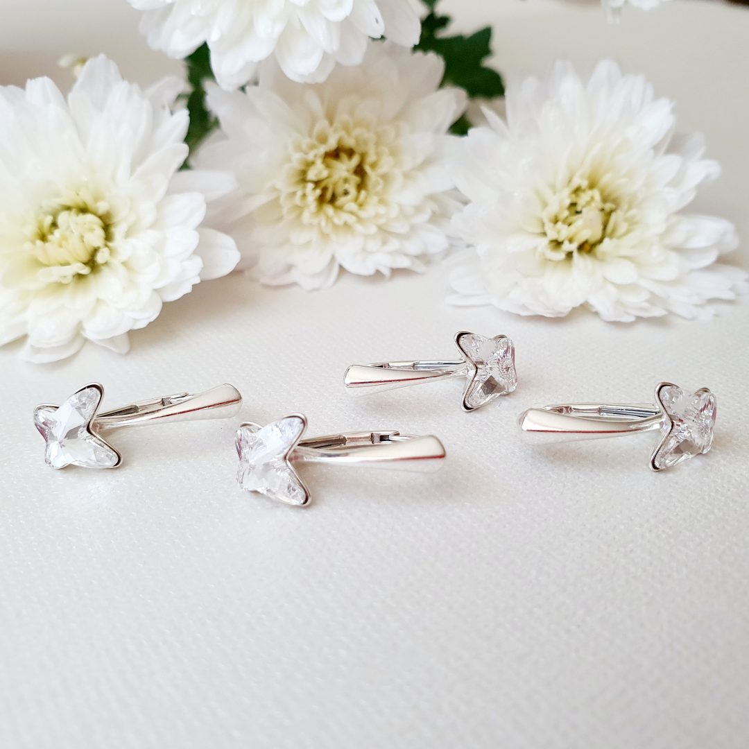 Cercei din argint 925 cu cristale Swarovski – fluturi de 8 mm, delicați și ușor de asortat. Potriviți atât pentru doamne, cât și pentru domnișoare.