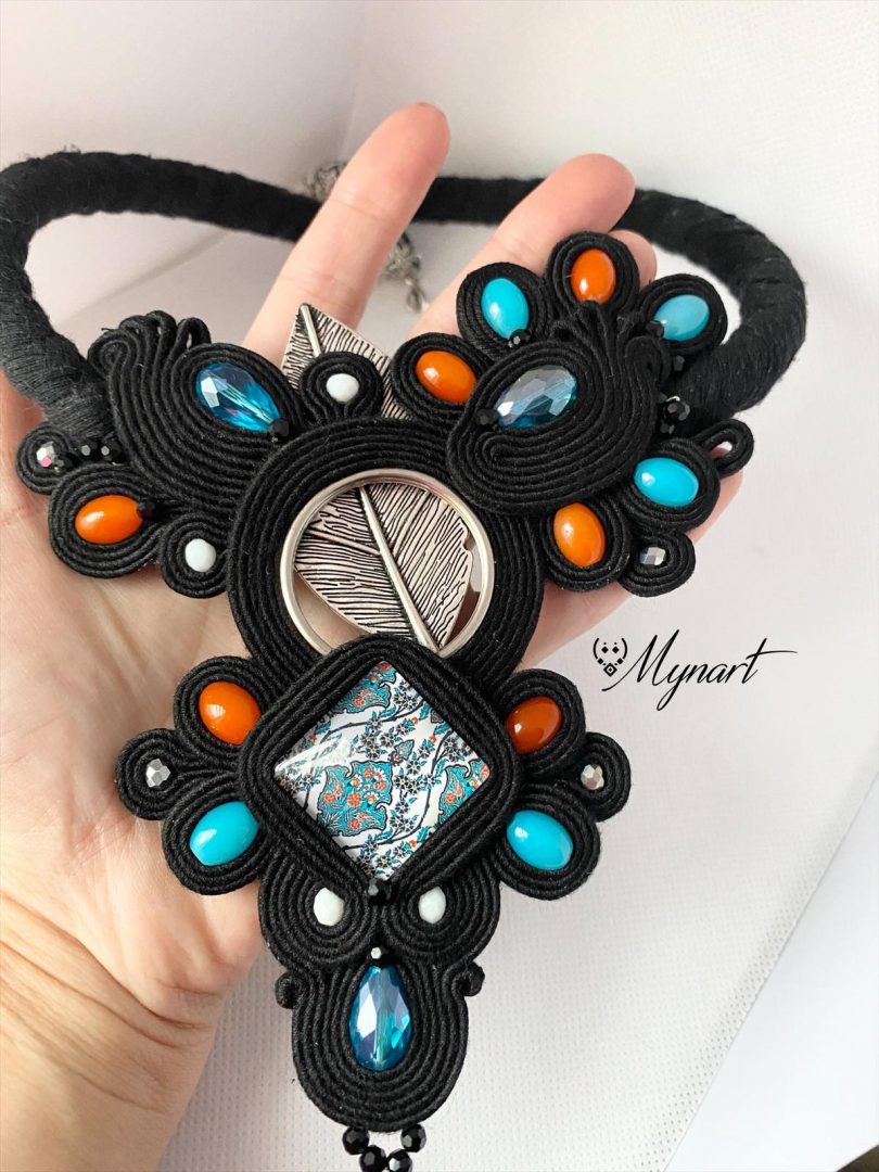 Colier lucrat manual cu tehnica soutache, model unicat.