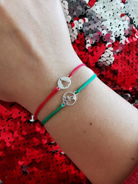 Bratara poate fi realizata din snur rosu sau verde. Va rugam, sa specificati culoarea preferata in casuta informatii suplimentare pe care o regasiti in pasul de check out.