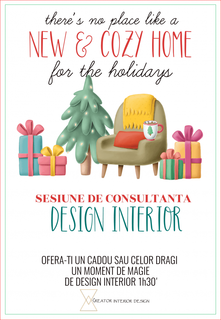 Creator Interior Design ofera o sesiune de consultanta privind designul interiorului tau sau unei persoane dragi. Pe parcursul unei ore si jumatate, dezbatem impreuna idei despre stilul tau de design, recompartimentarea, amenajarea si redecorarea spatiului arhitectural. Tratam in 2D releveul spatiului, stabilim zone ce se creeaza, flux de circulatie si functionalitatea spatiilor. Vorbim despre forme, culori, texturi si te ghidam sa-ti alegi produsele.