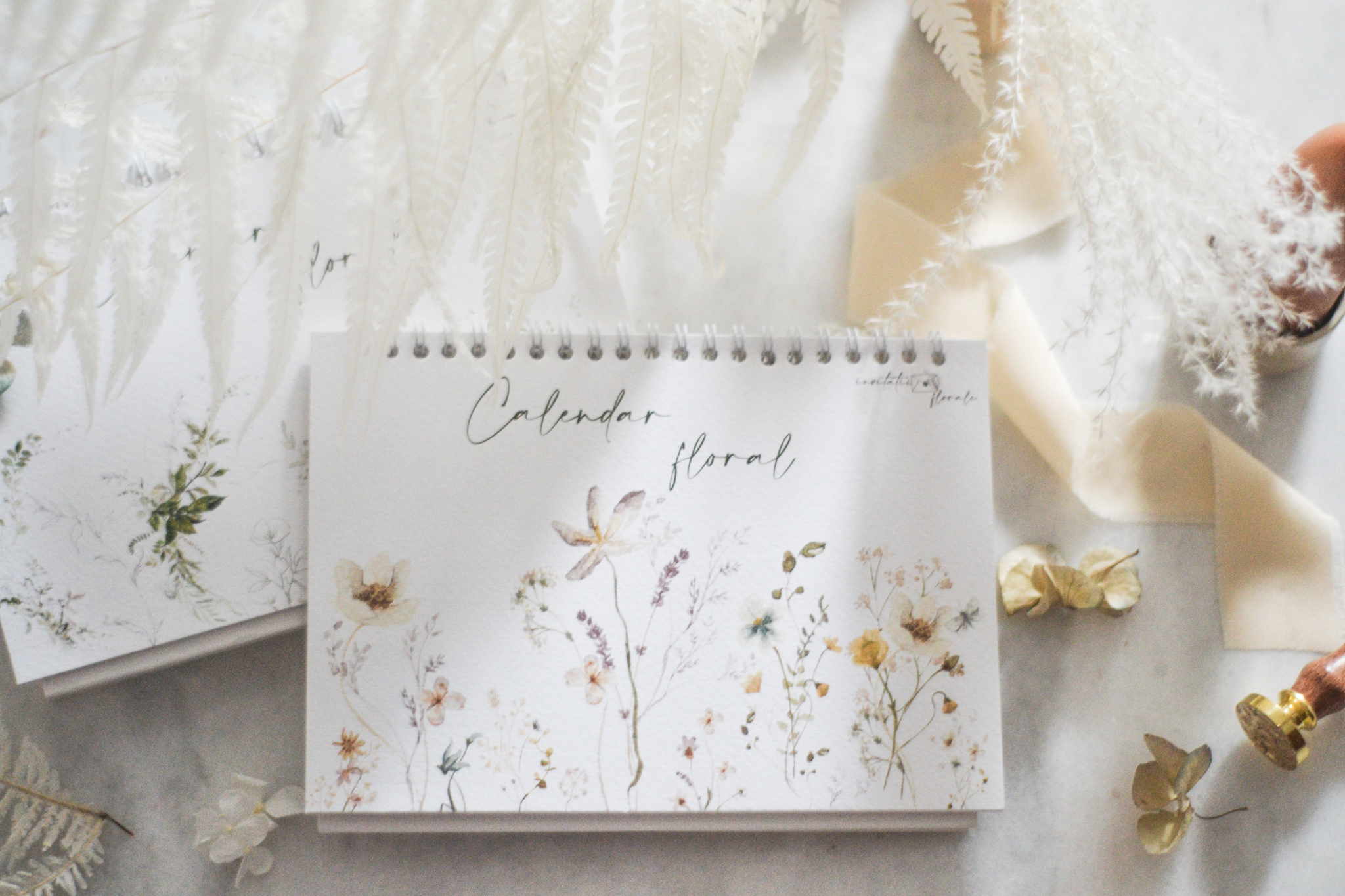 Calendarul floral reprezintă o trecere lină printre anotimpuri. Printurile florale nu sunt alese întâmplător, ci sunt în armonie cu scrisul.