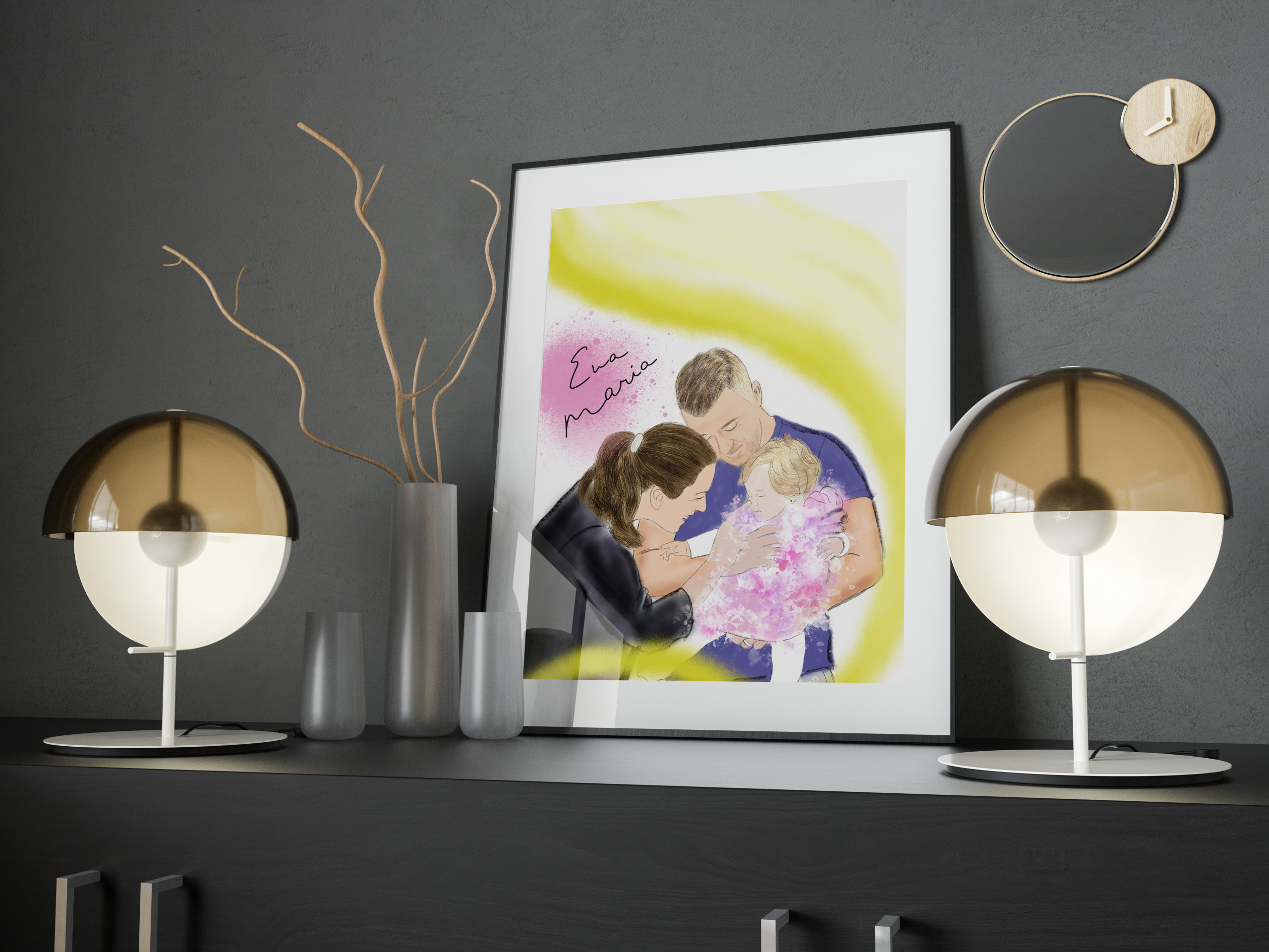 Surprinde-ți iubitul, soția, copiii, prietenii sau părinții cu un tablou ilustrat digital pe care îl poți înrăma și dărui cu un mesaj scris special. Adaug în ilustrație culorile preferate și țin cont să exprime emoția pe care tu mi-o transmiți. Adăugăm și un mesaj deosebit și gata, s-au topit ai tăi cei dragi!