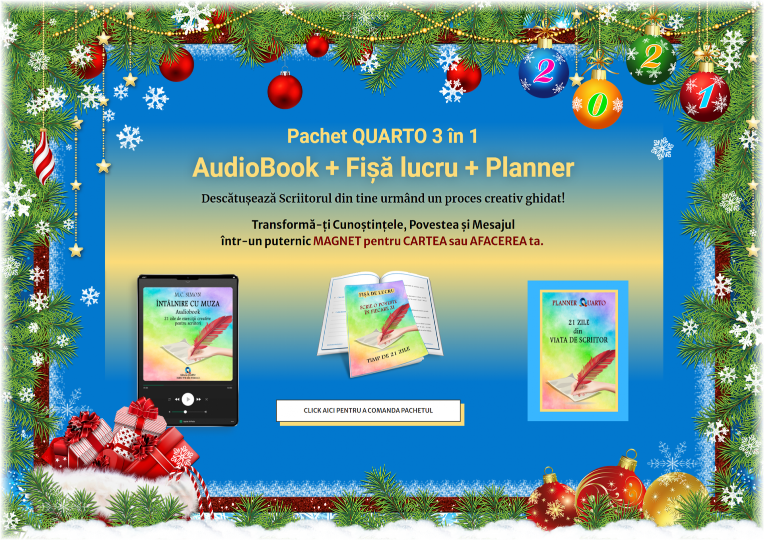 - Audiobook „Întâlnire cu Muza” – Program de 21 de Zile de exerciții creative pentru scriitori. (format mp3)