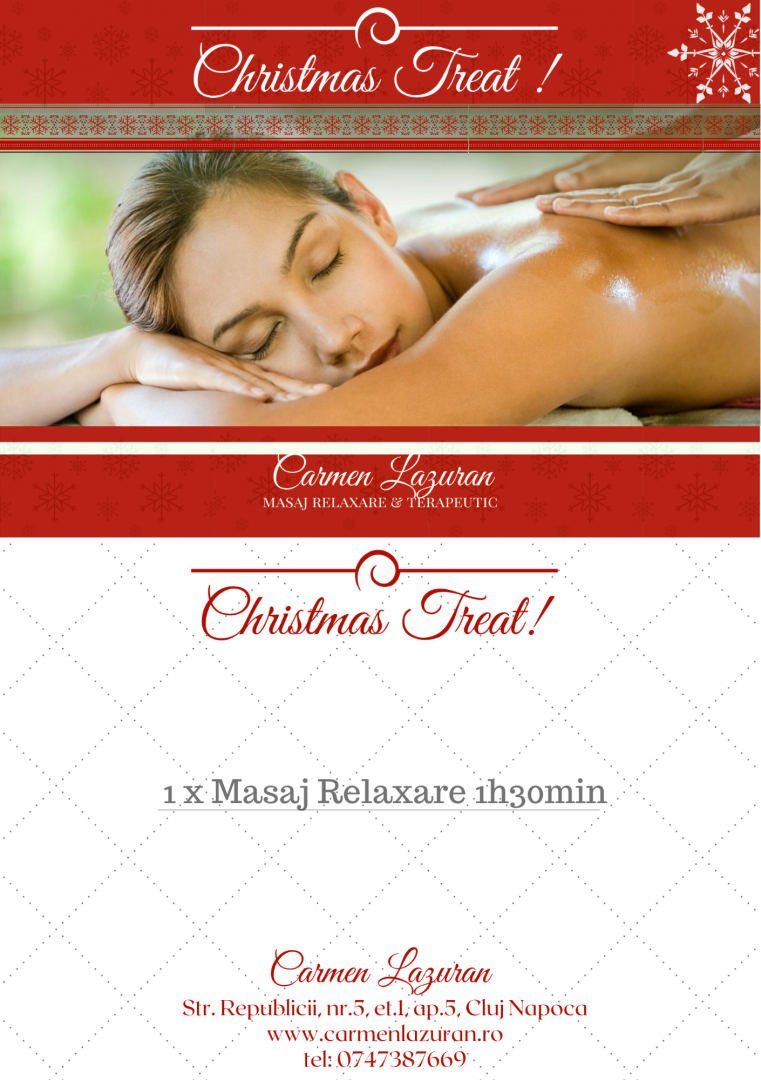 Un cadou “salvator” pentru intregul corp afectat de stresul zilnic… Persoana sarbatorita va beneficia de un masaj cu efect profund relaxant si odihnitor, care-i va readuce mintea si corpul intr-un echilibru perfect