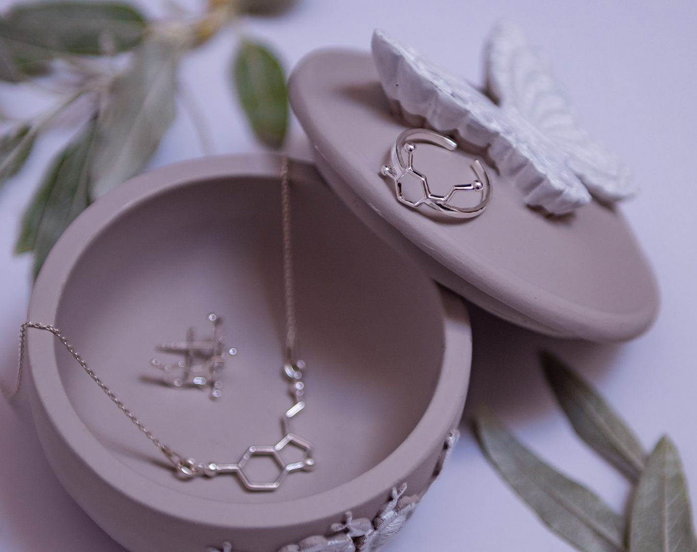 Simbolul reprezintă formula chimică a Serotoninei, “hormonul fericirii”, un mesager al stării de bine și al bucuriei din corpul nostru. Această bijuterie poate fi un cadou perfect când vrei să îi amintești unei persoane dragi câte motive de fericire are în jur sau pur și simplu să îi dorești fericire în viață.